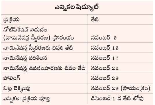 హైదరాబాద్, అక్టోబర్ 31 (నమస్తే తెలంగాణ): రాష్ట్రంలో ఖాళీ అయిన 6 ఎమ్మెల్యే కోటా ఎమ్మెల్సీ స్థానాలకు ఈ నెల 29న ఎన్నికలు జరగనున్నాయి. ఎన్నికలకు సంబంధించిన షెడ్యూల్ను కేంద్ర ఎన్నికల సంఘం ఆదివారం విడుదల చేసింది. ఈ నెల 9వ తేదీ నుంచి 16 వరకు నామిషన్లు స్వీకరణ ఉంటుంది. ఆంధ్రప్రదేశ్లో ఖాళీగా ఉన్న మూడు స్థానాలకు కూడా ఈసీ ఎన్నికల షెడ్యూల్ జారీ చేసింది. రాష్ట్రంలో ఎమ్మెల్యే కోటాలో ఎన్నికైన ఆరుగురు ఎమ్మెల్సీలు ఆకుల లలిత, మహమ్మద్ ఫరీదుద్దీన్, గుత్తా సుఖేందర్రెడ్డి, నేతి విద్యాసాగర్, బోడకుంటి వెంకటేశ్వర్లు, కడియం శ్రీహరి పదవీకాలం ఈ ఏడాది జూన్ 3వ తేదీతో ముగిసింది. ఏపీలో ఎమ్మెల్యే కోటాలో ఎన్నికైన ముగ్గురు ఎమ్మెల్సీలు దేవసాని చిన్న గోవిందరెడ్డి, మహమ్మద్ అహ్మద్ షరీఫ్, సోము వీర్రాజు పదవీకాలం ఈ ఏడాది మే 31తో ముగిసింది. రెండు రాష్ర్టాల్లోని ఈ స్థానాలకు కాలపరిమితి ముగిసే సమయానికే ఎన్నికలు నిర్వహించాల్సి ఉన్నప్పటికీ కరోనా కట్టడికి లాక్డౌన్ విధించటంతో ఆలస్యమైంది.