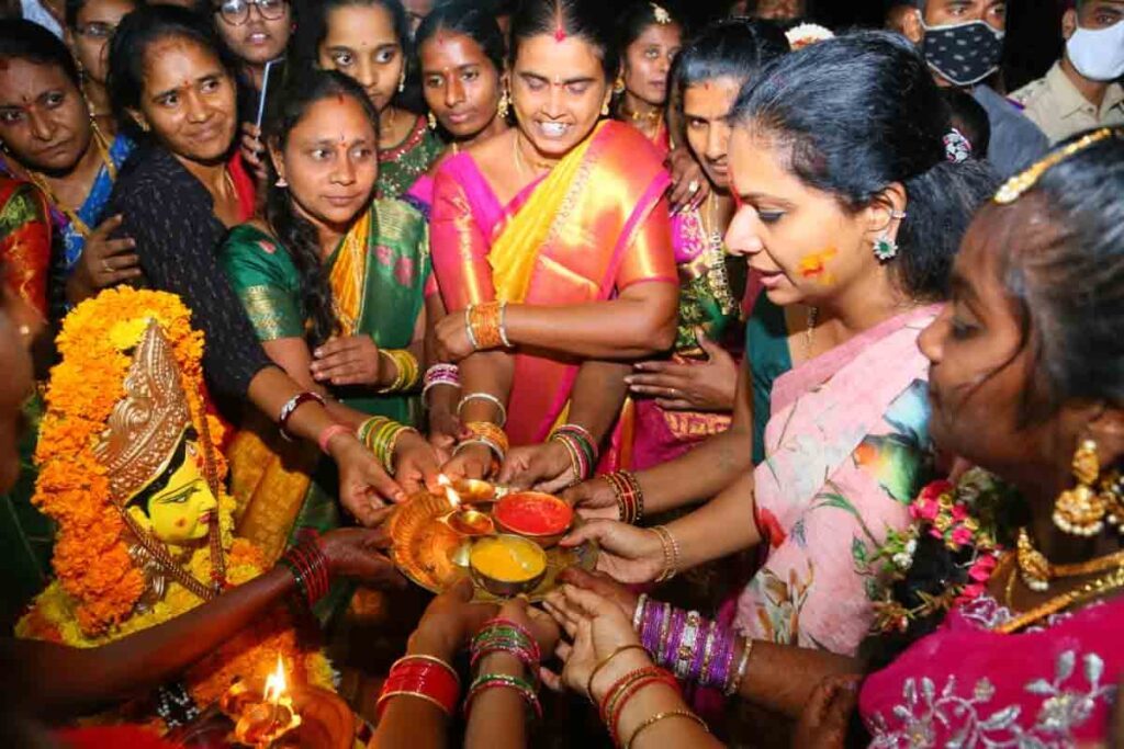 నిజామాబాద్ జిల్లాలోని కలిగోట్లో జరిగిన బంగారు బతుకమ్మ సంబురాల్లో ఎమ్మెల్సీ కల్వకుంట్ల