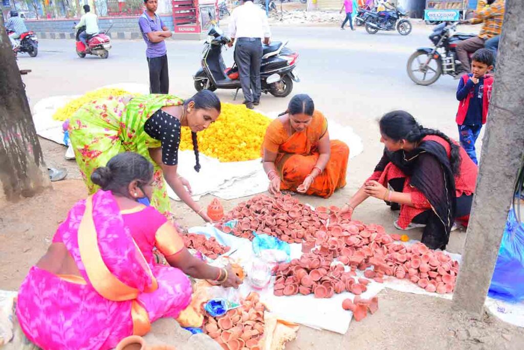 ఆలేరురూరల్ : దీపావళి సందర్భంగా మార్కెట్లలో సందడి వాతావరణం నెలకొంది. పండుగకు తమ ఇండ్లను దీపాలతో అలంకరించేందుకు మహిళలు పలు రకాల ప్రమిదలను కొనుగోలు చేస్తున్నారు. మట్టితో తయారు చేసిన వివిధ డిజైన్ల దీపపు కుందీలు, బొమ్మల కొలువు కోసం అవసరమైన బొమ్మలు అందుబాటులో దొరుకుతున్నాయి.