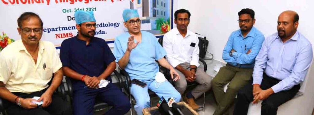 నీలగిరి, అక్ట్టోబర్ 31, ఉమ్మడి నల్లగొండ జిల్లా వైద్య చరిత్రలో మరో మైలురాయిని జిల్లా ప్రజలకు అందించినట్లు నల్లగొండ ఇన్స్టిట్యూట్ ఆఫ్ మెడికల్ అండ్ సైన్స్(నిమ్స్) వైద్యులు తెలిపారు. జిల్లా వైద్య చరిత్రలో తొలిసారిగా పది మంది గుండె రోగులకు యాంజియోగ్రామ్ను విజయవంతంగా చేసినట్లు చెప్పారు. ఆదివారం నిమ్స్ ఆస్పత్రిలో ఏర్పాటు చేసిన విలేకరుల సమావేశంలో ప్రముఖ గుండె వైద్య నిపుణుడు డాక్టర్ శరత్చంద్ర మాట్లాడుతూ.. వైద్యపరంగా నల్లగొండ జిల్లాలో గుండె సంబంధిత కేసులను పరిష్కరిస్తున్నట్లు తెలిపారు. అర్ధరాత్రి గుండెపోటు వచ్చి హైదరాబాద్కు వెళ్లే సమయం లేక చాలా మంది ప్రాణాలు కోల్పోతున్నారని పేర్కొన్నారు. ఇక నుంచి హైదరాబాద్కు వెళ్లాల్సిన అవసరం లేకుండానే నిమ్స్లో వైద్యసేవలు అందిస్తున్నట్లు చెప్పారు. రాబోయే రోజుల్లో ఓపెన్ బైపాస్ సర్జరీలు, ఇతర గుండె సంబంధ అన్ని రకాల ఆపరేషన్లు చేయనున్నట్లు వెల్లడించారు. చాలా మంది చిన్నారుల నుంచి పెద్దల వరకు గుండె సంబంధ రోగాలతో బాధపడుతూ హైదరాబాద్ లాంటి నగరాలకు వెళ్లి ఇబ్బందులు పడడంతోపాటు ఆర్థికంగా నష్టపోతున్నారన్నారు. కేవలం రూ.7,500కే యాంజియోగ్రామ్ చేస్తున్నట్లు తెలిపారు. జిల్లాకు చెందిన వైద్యులుగా ప్రజలకు అత్యాధునిక వైద్యసేవలు అందించేందుకు కృషి చేస్తున్నామన్నారు. వైద్యసేవలను జిల్లా ప్రజలు సద్వినియోగం చేసుకోవాలని సూచించారు. సమావేశంలో వైద్యులు ఎన్.సాయికృష్ణారెడ్డి, రవీందర్రెడ్డి, పి.వెంకట్రెడ్డి, రాజేశ్రెడ్డి, విజయ్కుమార్, వైవీ రాజశేఖర్రెడ్డి, సీఈఓ వీరారెడ్డి, పీఆర్ఓ అజయ్కుమార్, మేనేజర్ మోత్కూరు శ్రీనివాస్ పాల్గొన్నారు.
