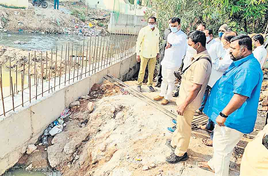ఈ సందర్భంగా ఎమ్మెల్యే మాట్లాడుతూ వచ్చే వానాకాలం నాటికి ముంపు ప్రాంతాల్లో అభివృద్ధి పనులను త్వరితగతిన పూర్తి చేయాలని అధికారులను ఆదేశించారు. గతంలో కురిసిన భారీ వర్షాలకు నీట మునిగిన ప్రాంతాల్లో సమస్య తిరిగి పునరావృతం కాకుండా తగిన ప్రణాళికలు తయారు చేయాలని అధికారులకు సూచించారు. వెంకన్నహిల్స్ నుంచి మొదలుకొని జీన్స్ ఫ్యాక్టరీ వద్ద గల కెమికల్ నాలా వరకు మిగిలిన రిటైనింగ్ వాల్స్ను ఎస్ఎఎన్డీపీ నిధులతో పూర్తి చేయాలన్నారు. దెబ్బతిన్న రోడ్లతో ప్రజలు ఇబ్బందులు పడకుండా ప్రణాళికలు సిద్ధం చేయాలని సూచించారు. కార్యక్రమంలో జీహెచ్ఎంసీ ఈఈ క్రిష్ణచైతన్య, ఏఈ సురేందర్నాయక్, ఇరిగేషన్ ఏఈ రామారావు, వాటర్ వర్క్స్ మేనేజర్ అనూష, కాలనీవాసులు భూపాల్రెడ్డి, శేఖర్రెడ్డి, పెద్ది మల్లేశ్, ఎం.వెంకట్రెడ్డి, సుభాష్, దుర్గారావు పాల్గొన్నారు.