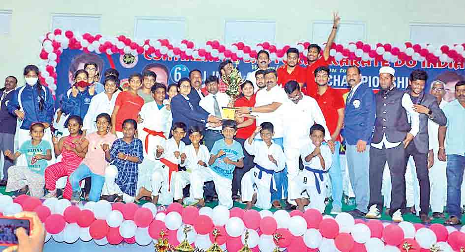 కొత్తపల్లి, నవంబర్ 21: అఖిల భారత ఓపెన్ కరాటే చాంపియన్షిప్లో తెలంగాణ జట్టు ఓవరాల్ చాంపియన్గా నిలిచింది. కరీంనగర్లోని అంబేద్కర్ స్టేడియంలో జరిగిన ఈ టోర్నీలో తెలంగాణ 536 పాయింట్లతో టాప్లో నిలువగా.. ఆంధ్రప్రదేశ్, పశ్చిమ బెంగాల్ వరుసగా ద్వితీయ, తృతీయ స్థానాలు దక్కించుకున్నాయి. ఆదివారం జరిగిన ముగింపు వేడుకల్లో కరాటే అసోసియేషన్ ఆఫ్ ఇండియా (కాయ్) జాతీయ ప్రధాన కార్యదర్శి రజనీష్ చౌదరి, సీఎస్కేఐ చైర్మన్ చల్ల హరిశంకర్, శ్రీనివాస్ విజేతలకు బహుమతులు ప్రదానం చేశారు.