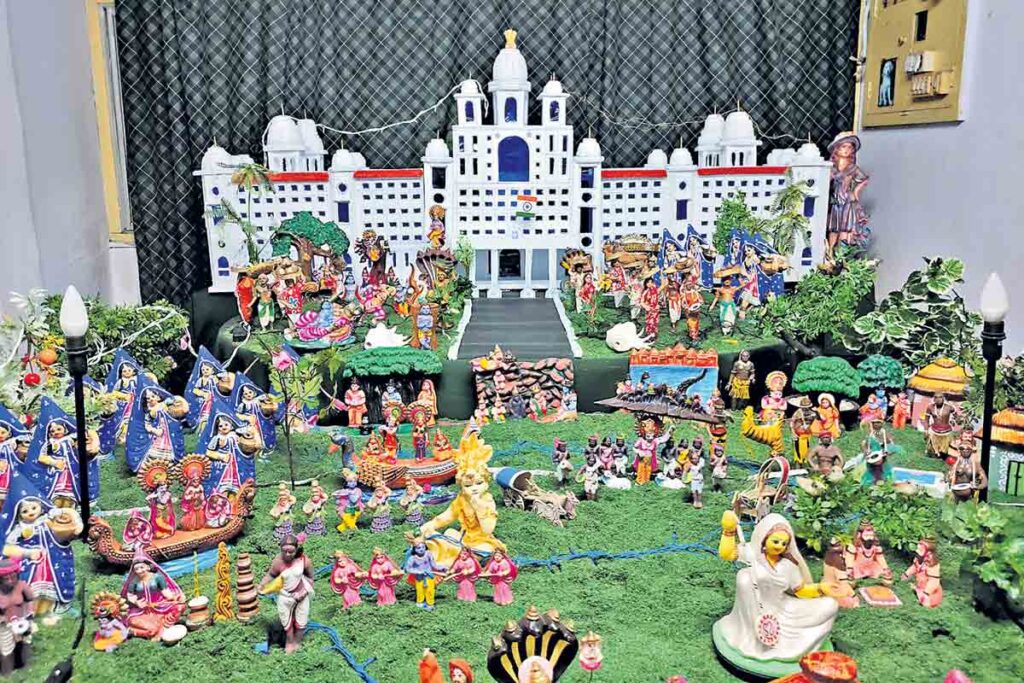 బన్సీలాల్పేట్, నవంబర్ 12 : చిన్ననాటి నుంచి తనలో ఉన్న ప్రతిభకు ప్రతి ఏటా సృజనాత్మకతను జోడిస్తూ కొత్త కొత్త ఆవిష్కరణలను దీపావళి బొమ్మల కొలువులో ప్రదర్శిస్తున్నారు దుర్గం విజయ్కుమార్. బన్సీలాల్పేట్ డివిజన్లోని న్యూబోయిగూడకు చెందిన ఆయన సెక్యూరిటీ ప్రింటింగ్ ప్రెస్లో ఉద్యోగం చేస్తున్నారు. అందరిలాగా కాకుండా విభిన్నంగా ఉండాలనే తపనతో ఈ సారి దీపావళి బొమ్మల కొలువులో త్వరలో నిర్మించనున్న ‘తెలంగాణ నూతన సచివాలయం’ భవనాన్ని యథావిధిగా థర్మాకోల్తో రూపొందించారు. ఆయన సతీమణి రాజకుమారి తొమ్మిది రోజులపాటు లక్ష్మీదేవికి పూజలు చేస్తున్నారు. నవంబర్ 4 నుంచి 13వ తేది వరకు ఏర్పాటు చేసిన ఈ ప్రదర్శనను చుట్టుపక్కల ప్రజలు పెద్ద ఎత్తున తరలివచ్చి, బొమ్మల కొలువును, అందులో రూపొందించిన ప్రత్యేక అంశాన్ని చూసి అభినందనలు తెలుపుతున్నారు.