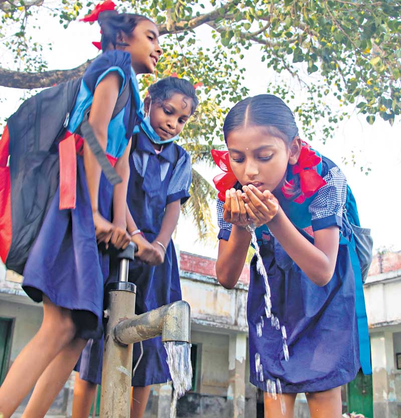 హైదరాబాద్, జనవరి 24 : మన ఊరు-మన బడి కార్యక్రమంలో భాగంగా విద్యార్థుల దాహార్తిని తీర్చేందుకు విద్యాశాఖ సమాయత్తమవుతున్నది. ఒక్కొక్క విద్యార్థికి కనీసం లీటర్ చొప్పున స్వచ్ఛమైన, శుద్ధమైన మిషన్ భగీరథ తాగునీటిని అందించేందుకు ఏర్పాట్లు చేస్తున్నది. ప్రతి ప్రభుత్వ పాఠశాలలో 5 వేల లీటర్ల సామర్థ్యం గల సంపు, రెండొందల లీటర్ల సామర్థ్యం గల స్టీల్ ట్యాంకును ఏర్పాటు చేయనున్నారు. ఇందుకు తొలి విడతలో రూ.5 కోట్లు వెచ్చించనున్నారు. సంప్లో మోటర్ బిగించి, పైపులైన్ల ద్వారా వాటర్ ట్యాంకుతో అనుసంధానం చేస్తారు. ట్యాంకు నుంచి నల్లాలు, పైపులైన్లను ఏర్పాటుచేస్తారు. ఇప్పటికే సంప్లు, ట్యాంకులు ఉన్న స్కూళ్లను మినహాయించి, పనిచేయని, శిథిలమైన వాటి స్థానంలో కొత్తవి నిర్మించాలని అధికారులు భావిస్తున్నారు. విద్యాశాఖ అంచనాల ప్రకారం రాష్ట్రంలో ఇప్పటివరకు 22,882 స్కూళ్లకు మిషన్ భగీరథ నల్లా కనెక్షన్లు ఇచ్చినప్పటికీ, కొన్నిచోట్ల సంప్లు, ట్యాంకులు, నల్లాలు లేవు. వీటి ఏర్పాటుకు మన ఊరు- మన బడి నిధులను వినియోగించనున్నారు.