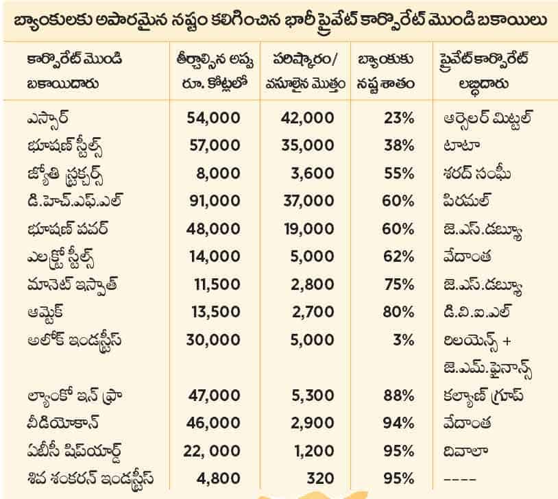 ప్రభుత్వ బ్యాంకుల నిర్వహణ లాభాలు, పనితీరు పకడ్బందీగా ఉన్నది. కానీ ప్రైవేట్ కార్పొరేట్ రంగానికి చెందిన బడా పారిశ్రామికవేత్తల మోసాల ఫలితంగా బ్యాంకింగ్ రంగం కుదేలైంది. వీటికి ప్రైవేట్ కార్పొరేట్ సంస్థల మొండి బకాయిలు మొత్తం రూ.15 లక్షల కోట్లకుపైనే ఉన్నాయి. ప్రభుత్వరంగ బ్యాంకుల లాభాలను ప్రైవేట్ కార్పొరేట్లకు దోచిపెట్టడం సాగుతున్నది. ప్రభుత్వం రుణాలు ఎగవేసిన వారిమీద క్రిమినల్ చర్యలు చేపట్టాలి. వారి వ్యక్తిగత ఆస్తులను జప్తు చేసి, అమ్మి మొండి బాకీలను వసూలు చేయాలి. కానీ ఆ పని చేయకుండా రుణాలను మాఫీచేసి వాటికే లాభం చేస్తున్నది. సామాన్యులు అప్పులు కట్టకపోతే వెంటాడి వసూలు చేస్తారు. మరి కార్పొరేట్ సంస్థల మొండి బకాయిలను ఎందుకు వసూలుచేయరు. రిజర్వ్ బ్యాంక్ నిబంధనల ప్రకారం దేశంలో ఏ ప్రైవేట్ కార్పొరేట్ సంస్థకైనా 15 శాతానికి పైబడి ప్రభుత్వరంగ బ్యాంకుల్లో వాటా ఉండకూడదు. కానీ కేంద్రం ఈ నిబంధనను సడలించి ఆ మొత్తాన్ని 26 శాతానికి పెంచింది. ఈ విధంగా దొడ్డిదారిన బ్యాంకులకు రుణాలను ఎగ్గొట్టిన ప్రైవేట్ బడా కార్పొరేట్ బాబులకే ఆ బ్యాంకులను కట్టబెట్టే ప్రయత్నం సాగుతున్నది.