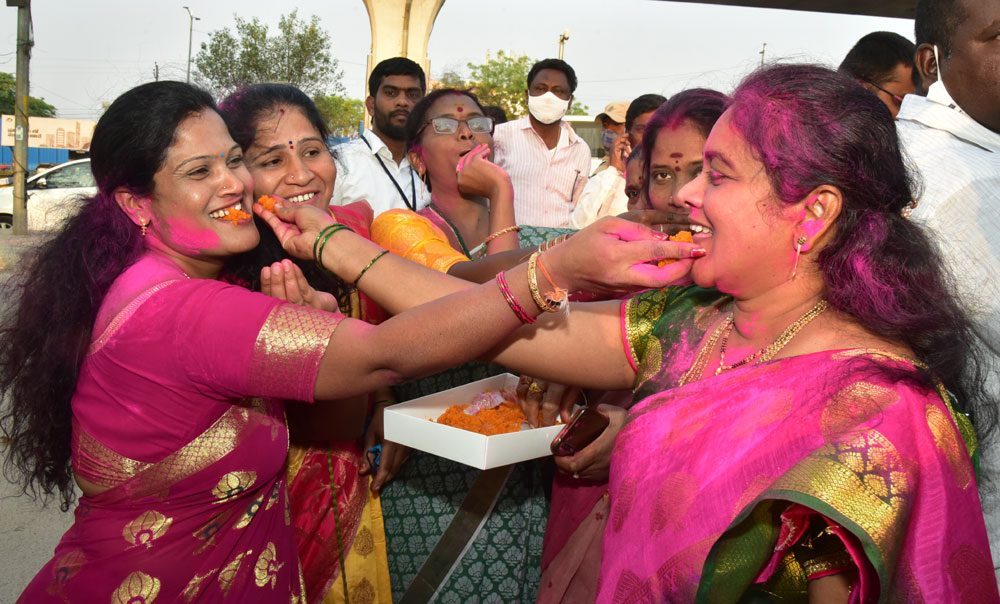 హైదరాబాద్, మార్చి 20 (నమస్తే తెలంగాణ)/నెట్వర్క్: పట్టభద్రుల ఎమ్మెల్సీ ఎన్నికల్లో టీఆర్ఎస్ అభ్యర్థులు విజయ దుందుభి మోగించడంతో శ్రేణుల సంబురాలు మిన్నంటాయి. హైదరాబాద్, రంగారెడ్డి, మహబూబ్నగర్ పట్టభద్రుల ఎమ్మెల్సీ గా ఎస్ వాణీదేవి, నల్లగొండ, ఖమ్మం, వరంగల్ పట్టభద్రుల ఎమ్మెల్సీగా పల్లా రాజేశ్వర్రెడ్డి విజ యం ఖరారు కావడంతో శనివారం సాయం త్రం నుంచి రాత్రి వరకు రాష్ట్రవ్యాప్తంగా టీఆర్ఎస్ నాయకులు, కార్యకర్తలు, అభిమానులు సంబురా ల్లో మునిగిపోయారు. హైదరాబాద్లోని నాయకు లు, కార్యకర్తలు తెలంగాణ భవన్కు చేరుకొని పటాకులు కాల్చి, స్వీట్లు పంచుకున్నారు. డప్పులు వాయిస్తూ డ్యాన్స్ చేశారు.