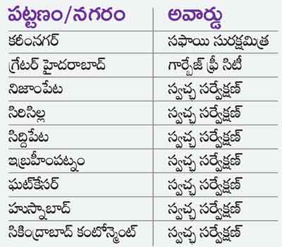 కేంద్రప్రభుత్వం నిర్వహించిన శానిటేషన్ చాలెంజ్లో తెలంగాణకు 12 అవార్డులు వచ్చాయని మంత్రి కేటీఆర్ తెలిపారు. 4,300 పట్టణాలు పోటీ పడగా 12 అవార్డులు రాష్ర్టానికే దక్కటం గొప్పవిషయమని చెప్పారు. పట్టణాభివృద్ధిశాఖ కృషికి లభించిన గుర్తింపుగా ఈ అవార్డులను భావిస్తున్నామని పేర్కొన్నారు. ఈ నెల 20న ఢిల్లీలో రాష్ట్రపతి రామ్నాథ్ కోవింద్ ఈ అవార్డులను ప్రదానం చేస్తారని వివరించారు. అవార్డులు సాధించిన పాలకవర్గాలకు, అధికారులకు అభినందనలు తెలిపారు. అవార్డులు సాధించడంలో విశేష కృషిచేసిన అరవింద్ కుమార్, ఎన్ సత్యనారాయణ, లోకేశ్కుమార్ను అభినందించారు.