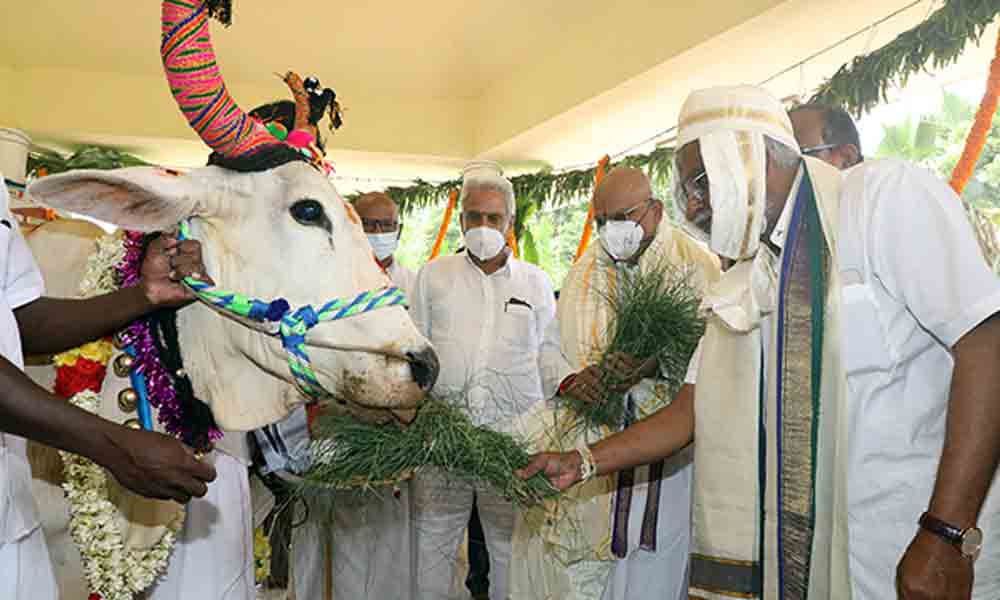 తిరుపతి : టీటీడీ గోశాలలో సోమవారం ఉదయం శాస్త్రోక్తంగా గోకులాష్టమి గోపూజ కార్యక్రమం నిర్వహించారు. టీటీడీ చైర్మన్ శ్రీ వైవి సుబ్బారెడ్డి, ఈఓ డాక్టర్ కేఎస్ జవహర్ రెడ్డి గోశాలలోని వేణుగోపాలస్వామి వారిని దర్శించుకున్నారు. అనంతరం గోమాత, దూడకు అర్చకుల మంత్రాల నడుమ నూతన వస్త్రాలు, పూలమాలలు వేసి శాస్త్రోక్తంగా పూజలు చేశారు. అనంతరం గోమాత, దూడకు ప్రదక్షిణలు చేసి హారతి ఇచ్చారు. గోమాత పాలు పితికి వాటిని తీసుకుని వెళ్లి అర్చకులకు అందించి అభిషేకం చేయించారు. అనంతరం వేంకటేశ్వర మహామంత్ర పుస్తక జపసమర్పణ (7 కోట్ల సార్లు ఓం నమోః వేంటేశాయ ) ఆలయాన్ని సందర్శించి అక్కడి పుస్తకంలో ఓం నమో వేంకటేశాయ అని రాశారు. సీవీఎస్వో శ్రీ గోపీనాథ్ జెట్టి, అదనపు సీవీ ఎస్వో శ్రీ శివకుమార్ రెడ్డి, గోశాల డైరెక్టర్ డాక్టర్ హరనాథ రెడ్డి, వీజీఓ మనోహర్తో పాటు పలువురు అధికారులు పాల్గొన్నారు.
