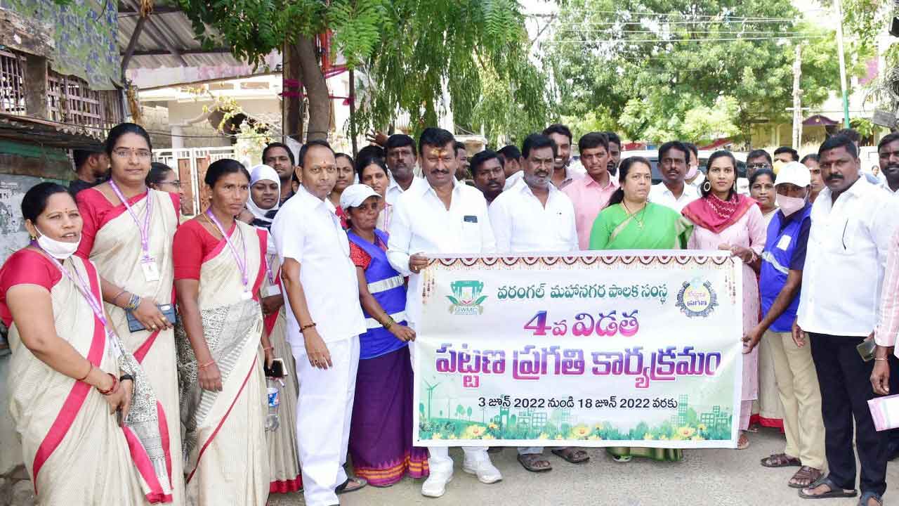 పట్టణ ప్రగతిలో భాగంగా గ్రేటర్ వరంగల్ 56వ డివిజన్లోని పలు కాలనీల్లో వర్ధన్నపేట ఎమ్మెల్యే అరూరి రమేశ్ 2.27కోట్లతో పలు అభివృద్ధి పనులకు శంకుస్థాపన, ప్రారంభోత్సవాలు చేశారు. వరంగల్ జిల్లా నల్లబెల్లి మండలంలోని మూడుచెక్కలపల్లి గ్రామంలో నిర్వహించిన పల్లెప్రగతి కార్యక్రమంలో ఎమ్మెల్యే పెద్ది సుదర్శన్రెడ్డి పాల్గొని గ్రామస్తులకు దిశానిర్దేశం చేశారు. వరంగల్ తూర్పు ఎమ్మెల్యే నన్నపునేని నరేందర్ 21వ డివిజన్ ఎల్బీనగర్లో, సంగెం మండలం గవిచర్ల, రాంచంద్రాపురం గ్రామాల్లో ఎమ్మెల్యే ధర్మారెడ్డి పాల్గొన్నారు. 20వ డివిజన్లోని పద్మానగర్, శాంతినగర్ ప్రాంతాల్లో మేయర్ గుండు సుధారాణి, కమిషనర్ ప్రావీణ్య పర్యటించి పట్టణప్రగతి పనులు పరిశీలించారు.