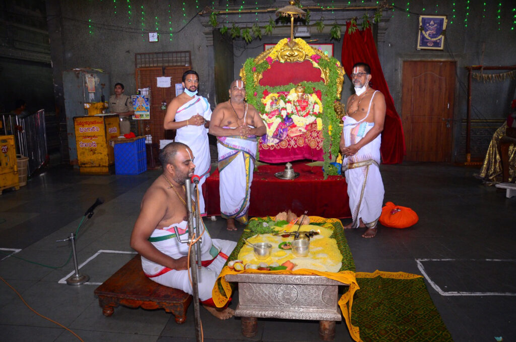 యాదాద్రి, అక్టోబర్ 27 : పవ్రిత పుణ్యక్షేత్రమైన యాదాద్రి లక్ష్మీనరసింహ స్వామి బాలాలయంలో బుధవారం ఉదయం స్వామి, అమ్మవార్లకు విశేష పూజలను ఆగమశాస్త్రం ప్రకారం నిర్వహించారు. వేకువజామునే ఆలయాన్ని తెరిచిన అర్చకులు స్వామి, అమ్మవార్లకు సుప్రభాతం చేపట్టారు. ప్రతిష్ఠామూర్తులకు ఆరాధన నిర్వహించారు. ఉత్సవమూర్తులను పంచామృతాలతో అభిషేకించి, అనంతరం తులసీపత్రాలతో అర్చన జరిపారు. దర్శనమూర్తులకు సువర్ణపుష్పార్చన, అమ్మవారికి కుంకుమార్చన చేశారు. బాలాలయంలోని మహామండపంలో సుదర్శన నారసింహ హోమం, విశ్వక్సేనారాధన, నిత్యతిరుకల్యాణ మహోత్సవాలు ఘనంగా జరిగాయి. రాత్రి ఆరగింపు చేపట్టిన అర్చకులు అనంతరం స్వామివారికి పవళింపు సేవ నిర్వహించారు. శ్రీవారి ఖజానాకు బుధవారం రూ.6,16,057 ఆదాయం వచ్చినట్లు ఈఓ గీత తెలిపారు.