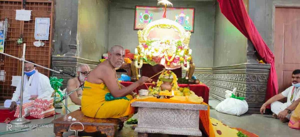 యాదాద్రి, అక్టోబర్30 : యాదాద్రి లక్ష్మీనరసింహ స్వామి బాలాలయంలో స్వామి, అమ్మవార్లకు నిత్యారాధనలు శనివారం శాస్త్రోక్తంగా నిర్వహించారు. ప్రతిష్టామూర్తులకు నిజాభిషేకం మొదలుకుని తులసీ అర్చన వరకు అర్చక బృందం సభ్యులు నిత్య పూజలు చేశారు. ఉదయం మూడు గంటలకు సుప్రభాతం నిర్వహించిన అర్చకులు లక్ష్మీ నారసింహుడిని ఆరాధిస్తూ ప్రత్యేక పూజలు చేసి హారతి నివేదన చేశారు. స్వామి వారిని సుదర్శన హోమంతో కొలిచి, సుదర్శన ఆళ్వారును కొలుస్తూ హోమం చేశారు. ప్రతిరోజూ నిర్వహించే నిత్య తిరుకల్యాణోత్సవంలో భక్తులు అధిక సంఖ్యలో పాల్గొన్నారు. దేవేరులను ముస్తాబు చేసి గజవాహనంపై ముఖ మండపంలో ఊరేగించారు. లక్ష్మీ సమేతుడైన నారసింహుడిని ఆరాధిస్తూ సుమారు గంటన్నరకు పైగా కల్యాణతంతు జరిపారు. సాయంత్రం అమ్మవారికి కుంకుమార్చన, ఆంజనేయ స్వామి వారికి సహస్రనామార్చన, పుష్కరిణి వద్ద కొలువై ఉన్న క్షేత్ర పాలక ఆంజనేయ స్వామికి నిర్వహించిన పూజల్లో భక్తులు పెద్ద సంఖ్యలో పాల్గొన్నారు. కొండ కింద పాత గోశాల వద్ద గల వ్రత మండపంలో సత్యనారాయణ స్వామి వ్రతాలు ఘనంగా నిర్వహించారు. కార్యక్రమంలో భక్తులు అధిక సంఖ్యలో పాల్గొని వ్రతమాచరించి మొక్కులు తీర్చుకున్నారు. పాతగుట్ట లక్ష్మీనరసింహ స్వామి దివ్యక్షేత్రంలో నిత్యపూజ ల కోలాహలం నెలకొంది. శ్రీవారి ఖజానాకు శనివారం రూ. 9,57,193 ఆదాయం వచ్చినట్లు ఈఓ గీత తెలిపారు.