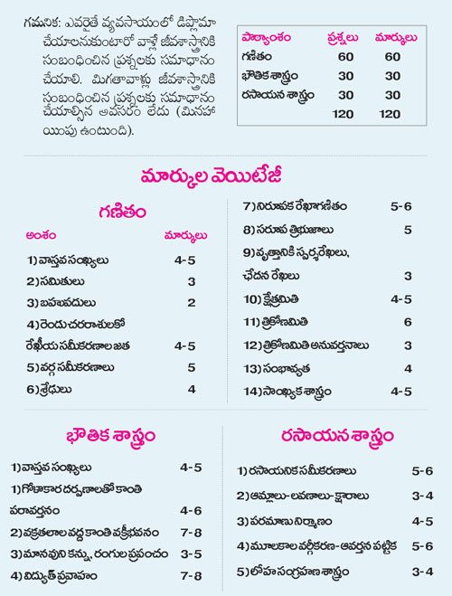 గత పాలిసెట్ ప్రశ్నపత్రాలను సాధన చేయడం ద్వారా మనకు ఏయే పాఠ్యాంశాల్లోని ఏ అంశాలపై ఎక్కువ దృష్టిసారించి మంచి మార్కులు తెచ్చుకోవాలో తెలుస్తుంది.