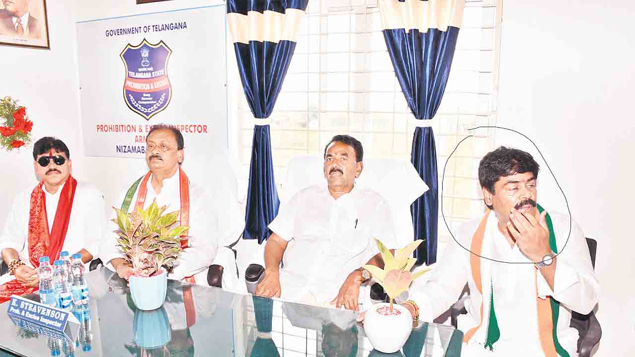 బాల్కొండ నియోజకవర్గంలోని మోర్తాడ్, భీమ్గల్ మండలాల్లో ప్రొహిబిషన్ అండ్ ఎక్సైజ్ శాఖ బిల్డింగ్లను ఉర్దూ అకాడమీ చైర్మన్ తాహెర్బిన్ హందాన్, సహకార శాఖ కార్పొరేషన్ చైర్మన్ మానాల మోహన్రెడ్డితో కలిసి ఆబ్కారీ మంత్రి జూపల్లి కృష్ణారావు ప్రారంభించారు. అయితే, ఈ సందర్భంగా కొందరు కాంగ్రెస్ నేతల శైలి విమర్శలకు తావిచ్చింది. మొన్నటి అసెంబ్లీ ఎన్నికల్లో ఓడిన వారే మంత్రి పర్యటనలో హల్చల్ చేయడం చూసిన వారిని ముక్కున వేలేసుకునేలా చేసింది.