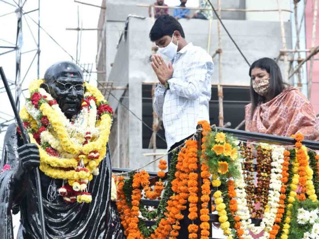 నిజామాబాద్ సిటీ : దేశ స్వాతంత్య్రం కోసం ప్రాణాలను సైతం లెక్కచేయకుండా పోరాడిన మహనీయుల కలలను నిజం చేయాలని జిల్లా కలెక్టర్ నారాయణరెడ్డి అన్నారు. శనివారం మహాత్మాగాంధీ, లాల్ బహుదూర్ శాస్త్రి జయంతి ఉత్సవాలను ఘనంగా నిర్వహించారు. ఈ సందర్భంగా గాంధీ,శాస్త్రిల విగ్రహాలకు పూలమాలలు వేసి నివాళులు అర్పించారు. కలెక్టర్ మాట్లాడుతూ.. బ్రిటిష్ ప్రభుత్వంతో పోరాడి జైలుకు వెళ్లి అహింస మార్గం ద్వారా భారతదేశానికి స్వాతంత్య్రం తీసుకువచ్చారని గుర్తుచేశారు. వారి స్ఫూర్తితో ముందుకుసాగాల్సిన అవసరం ఉందని పిలుపునిచ్చారు. ఈ కార్యక్రమంలో శిక్షణ అసిస్టెంట్ కలెక్టర్ మకరంద్ , అదనపు కలెక్టర్లు చిత్రమిశ్రా, చంద్రశేఖర్ తదితరులు పాల్గొన్నారు.