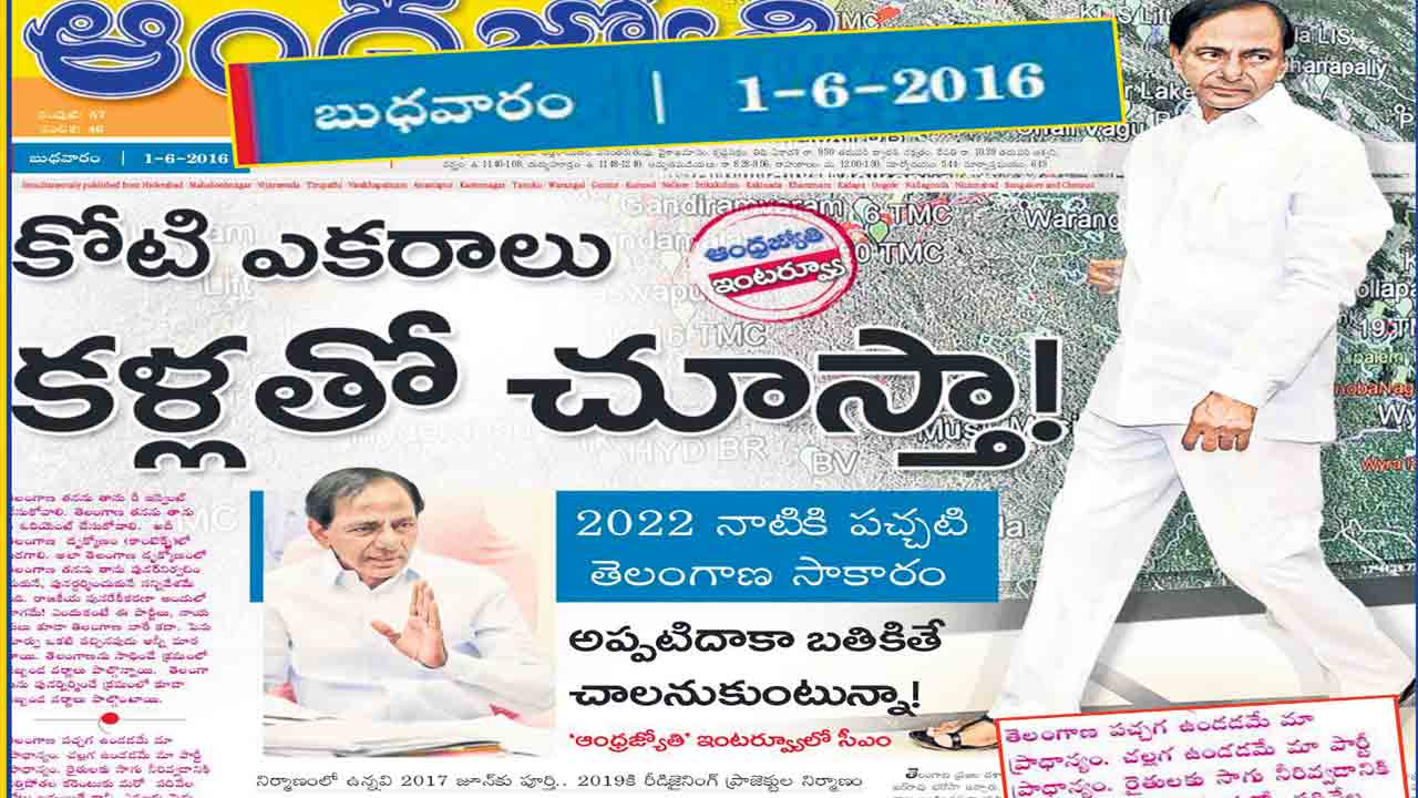 2016, జూన్ 1 ;అప్పటికి టీఆర్ఎస్ అధికారంలోకి వచ్చి రెండేండ్లు మాత్రమే. అసెంబ్లీలో మూడింట రెండు వంతుల మెజారిటీ లేదు. కరెంటు పూర్తిగా కుదురుకోలేదు. గ్రిడ్తో అనుసంధానించే లైన్లు పూర్తి కాలేదు. ప్రాజెక్టులు ప్రారంభదశలో ఉన్నాయి. మీడియా తెలంగాణను విఫల రాష్ట్రంగా చూపేందుకు పనిగట్టుకొని వ్యతిరేక కథనాలు గుప్పిస్తున్నది. ముంపు పేరిట విపక్షాలు ఇటు వీధుల్లో అటు కోర్టుల్లో అడ్డుకునే కుట్రలు చేస్తున్నాయి. అయినా తెలంగాణలో కోటి ఎకరాలకు సాగునీరు సాధించి చూపుతామని ఓ పత్రికకు ఇచ్చిన ఇంటర్వ్యూలో కేసీఆర్ చెప్పారు. 2022 నాటికి పూర్తిగా పచ్చని తెలంగాణ సాధిస్తానని తన విజన్ను ప్రకటించారు. తనకు తానే డెడ్లైన్ విధించుకున్నారు. ఆనాటి బడ్జెట్.. రాజకీయ పరిస్థితులు.. అధికార యంత్రాంగం పనితీరు.. ప్రాజెక్టుల నిర్మాణాలకు జీవితకాలం సరిపోని గత చరిత్ర.. నీళ్ల కేటాయింపులో కిరికిరీలు.. ఇవన్నీ లెక్కేస్తే ఆ ప్రకటన ఒక సాహసం.ఎదుటివారు నమ్మలేని ఒక అసాధ్యం. ఇవేవీ ఆయన పరిగణనలోకి కూడా తీసుకోలేదు. తెలంగాణ సకల దరిద్రాలకు నీళ్లే పరిష్కారం అనే శిలాసదృశ్యమైన నమ్మకం ఆయనది. అది సాధించడానికి వేసుకున్న తన రోడ్ మ్యాప్ మీద ఆయనకు గుండెనిండా విశ్వాసం. అందుకే అంత ధైర్యంగా కోటి ఎకరాలకు నీళ్లిస్తానని ప్రకటించారు. ఆ తర్వాత ఇటు పాలనను అటు ప్రాజెక్టులను ఉరికించారు. ఎన్నో అడ్డంకులు. ఎంతో బొబ్బ. చివరకు ఆయన విశ్వాసమే గెలిచింది. ఆరేండ్ల కింద ఆయన ప్రకటించినట్టుగానే రాష్ట్రం కోటి ఎకరాల ఆకుపచ్చ తెలంగాణగా మారింది.