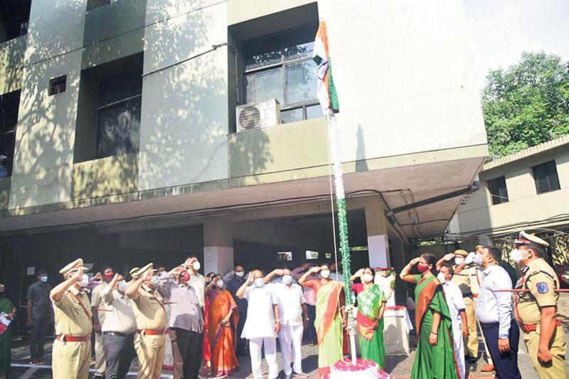 రంగారెడ్డి, జూన్ 2, (నమస్తే తెలంగాణ) : టీఆర్ఎస్ ప్రభుత్వానికి అభివృద్ధి, సంక్షేమం రెండు కండ్లు అని, రాష్ట్రం బంగారు తెలంగాణ దిశగా అడుగులు వేస్తున్నదని రాష్ట్ర విద్యాశాఖ మంత్రి పి.సబితాఇంద్రారెడ్డి అన్నారు. రాష్ట్ర ఆవిర్భావ దినోత్సవం సందర్భంగా బుధవారం సరూర్నగర్ ఇండోర్ స్టేడియంలో అమరవీరుల స్థూపం వద్ద నివాళులర్పించిన మంత్రి జిల్లా కలెక్టరేట్ కార్యాలయంలో జాతీయ జెండాను ఆవిష్కరించారు. కొవిడ్ వ్యాప్తి దృష్ట్యా జిల్లా అంతటా ఆవిర్భావ దినోత్సవాన్ని నిరాండంబరంగా నిర్వహించారు. ఈ సందర్భంగా మంత్రి మాట్లాడుతూ.. తెలంగాణ రాష్ట్రం దేశానికే ఆదర్శంగా నిలుస్తుందన్నారు. బంగారు తెలంగాణ నిర్మాణంలో అందరూ భాగస్వాములు కావాలని, జిల్లాలోని జడ్పీ చైర్మన్, ఎంపీ, ఎమ్మెల్సీలు, ఎమ్మెల్యేలు, అధికారులు, ఇతర ప్రజాప్రతినిధుల సహకారంతో జిల్లాను అభివృద్ధిపథంలో ముందుకు తీసుకువెళ్తున్నట్లు మంత్రి తెలిపారు. ప్రగతిభవన్లో జరిగిన వేడుకల్లో చేవెళ్ల ఎంపీ గడ్డం రంజిత్ రెడ్డి, చేవెళ్ల ఎమ్మెల్యే క్యాంపు కార్యాలయంలో స్థానిక ఎమ్మెల్యే కాలె యాదయ్య, ఇబ్రహీంపట్నం మున్సిపల్ కార్యాలయంలో ఎమ్మెల్యే మంచిరెడ్డి కిషన్ రెడ్డి, నాంపల్లిలోని డీసీసీబీ ప్రధాన కార్యాలయంలో డీసీసీబీ చైర్మన్ బి.మనోహర్రెడ్డి జాతీయ జెండాను ఆవిష్కరించారు. జిల్లాలోని అన్ని మండల కేంద్రాల్లో, మున్సిపాలిటీల్లో, గ్రామ పంచాయతీల్లో రాష్ట్ర ఆవిర్భావ దినోత్సవం సందర్భంగా జాతీయ జెండాను ఆవిష్కరించారు. వేడుకల్లో జడ్పీ చైర్పర్సన్ అనితారెడ్డి, ఎంపీ రేవంత్రెడ్డి, ఎమ్మెల్సీలు వాణీదేవి, మల్లేశం, దయానంద్, జిల్లా కలెక్టర్ అమయ్కుమార్, రాచకొండ సీపీ మహేశ్ భగవత్, అదనపు కలెక్టర్లు ప్రతీక్జైన్, తిరుపతిరావు పాల్గొన్నారు.