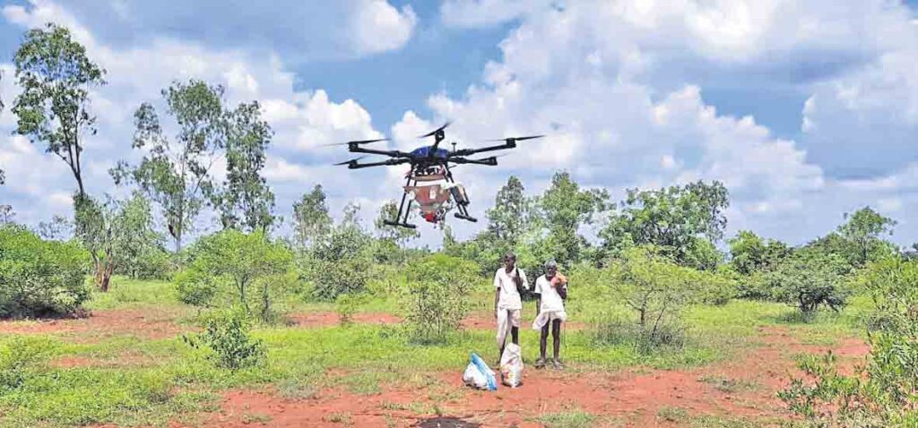 పరిగి,అక్టోబర్ 4: సాంకేతిక పరిజ్ఞానం అభివృద్ధి చెందిన తర్వాత అనేక రకాలుగా మానవుడికి ఉపయోగపడుతున్నది.ఇటీవల డ్రోన్లతో అత్యవసర సమయా ల్లో టీకాలు, మందులు తరలించే కార్యక్రమానికి వికారాబాద్ వేదికగా నిలువగా ఈసారి అటవీ శాఖ అధికారులు డ్రోన్తో అడవిలో వివిధ రకాల మొక్కలకు సంబంధించిన సీడ్బాల్స్ వెదజల్లారు. పరిగి మండలం నస్కల్ అటవీ ప్రాంతంలో మొక్కల పెంపకానికి సంబంధించి మొక్కలు నాటేందుకు అనువుగా లేదు. గుట్టల ప్రాంతం ఉండడంతో గుంతలు తవ్వడానికి ఇబ్బందికరం. దీంతో సోమవారం అటవీ శాఖ రేంజ్ ఆఫీసర్ అబ్దుల్ హాయ్, డిప్యూటీ రేంజ్ ఆఫీసర్ సుమన్, బీట్ ఆఫీసర్ మల్లప్పతోపాటు హైదరాబాద్లోని పీసీసీఎఫ్ కార్యాలయం నుంచి వచ్చిన సిబ్బంది నస్కల్ అటవీ ప్రాంతంలో డ్రోన్తో వివిధ రకాల మొక్కలకు సంబంధించిన సీడ్బాల్స్ వెదజల్లారు. అడవిలో పెరిగే సీతాఫలాలు, చింత, గోరింటాకు, ఉసిరి, వెదురుకు సంబంధించిన విత్తనాల బాల్స్ డ్రోన్ ద్వారా అటవీ ప్రాం తంలో వెదజల్లారు. ఒక్కోసారి 3వేల విత్తనాల బాల్స్ చొప్పున, పది పర్యాయాలు మొత్తం 30వేల సీడ్బాల్స్ నస్కల్ అటవీ ప్రాంతంలో వెదజల్లారు. గతంలో సీడ్బాల్స్ను అటవీ ప్రాంతంలో స్వయంగా విసిరివేసేవారు. డ్రోన్తో సీడ్బాల్స్ వెదజల్లడం వికారాబాద్ జిల్లాలో ఇదే మొదటిసారి.