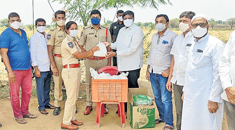 పోలీసులకు మాస్కులు, శానిటైజర్స్ పంపిణీ