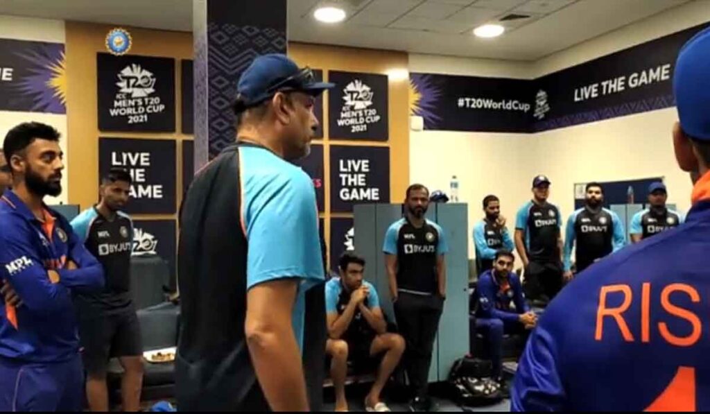 Here's a snippet from @RaviShastriOfc's team address in the dressing room, reflecting on the team's journey in the last few years. 👍 👍 #T20WorldCup #INDvNAM
