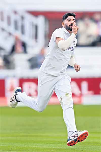 లండన్: తనను విమర్శించే వారికి బంతితోనే సమాధానమిస్తానంటున్నాడు హైదరాబాదీ పేసర్ మహమ్మద్ సిరాజ్. ఇంగ్లండ్తో జరుగుతున్న టెస్ట్ సిరీస్లో భాగంగా వికెట్లు తీసిన అనంతరం సిరాజ్.. నోటి మీద వేలు వేసుకుని సంబురాలు చేసు కుంటున్నాడు. లార్డ్స్ టెస్ట్ తొలి ఇన్నింగ్స్లో ఇంగ్లండ్ బ్యాట్స్మెన్ను ఔట్ చేశాక ఇదే తరహాలో సెలబ్రేట్ చేశాడు. దీనిపై అతడు మాట్లాడుతూ.. ‘అది విమర్శకులకు నా సమాధానం. నా బౌలింగ్ గురించి వాళ్లు చాలా అన్నారు. నేను ఇది చేయలేనని, అది చేయలేనని విమర్శలు చేశారు. వాళ్లందరికీ బంతితోనే సమాధానం ఇవ్వాలనుకున్నా. అందులోంచి పుట్టిందే ఈ కొత్త తరహా సెలబ్రేషన్’ అని అన్నాడు.