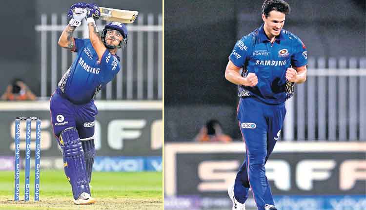 రాజస్థాన్: లూయిస్ (ఎల్బీ) బుమ్రా 24, జైస్వాల్ (సి) ఇషాన్ (బి) కౌల్టర్నైల్ 12, శాంసన్ (సి) జయంత్ (బి) నీషమ్ 3, దూబే (బి) నీషమ్ 3, ఫిలిప్స్ (బి) కౌల్టర్నైల్ 4, మిల్లర్ (ఎల్బీ) కౌల్టర్నైల్ 15, తెవాటియా (సి) ఇషాన్ (బి) నీషమ్ 12, గోపాల్ (సి) ఇషాన్ (బి) బుమ్రా 0, సకారియా (బి) కౌల్టర్నైల్ 6, కుల్దీప్ (నాటౌట్) 0, ముస్తఫిజుర్ (నాటౌట్) 8, ఎక్స్ట్రాలు: 3, మొత్తం: 90/9, వికెట్ల పతనం: 1-27, 2-41, 3-41,4-48, 5-50, 6-71, 7-74, 8-76, 9-82, బౌలింగ్: బౌల్ట్ 4-0-24-0, జయంత్ 2-0-17-0, బుమ్రా 4-0-14-2,కౌల్టర్నైల్ 4-0-14-4, నీషమ్ 4-0-12-3, పొలార్డ్ 2-0-9-0.