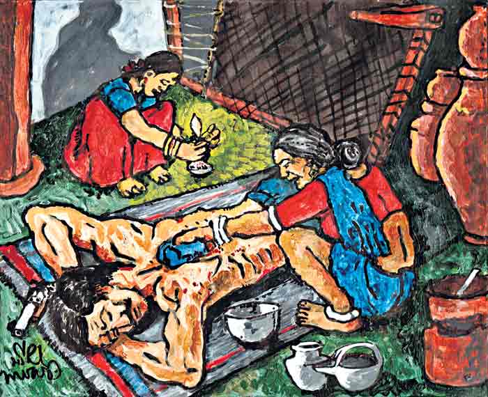‘ఎప్పుడు పన్నవో ఏమో.. జరసేపు నిద్రవో’ అనేసరికి పండుకున్నడు. కన్నంటుకుంది. కొడుకు ఇట్లపన్నడో లేదో మల్లా దర్వాజల సప్పుడు. ఈసారి సప్పుడు పెద్దగొస్తాంది. ఇది పక్కా పోలీసులదే అనిపించింది. భయపడుతూనే ‘ఎవరుల్లా’ అన్నా.‘ఏయ్ రామీ.. దర్వాజా ఖోలో’ అనే అరుపులు వినిపిస్తున్నయి. నేను గొల్లెం తీసినా తీయకపోయినా దర్వాజలు పలగ్గొట్టయినా వచ్చెటట్లున్నరు. మల్లవ్వనే కాదు అవ్వా అని నా ఇల్లజొచ్చిన పొలగాన్నీ బతికించుకోవాల్నని.. పోరనికి గొల్లేశం కట్టించిన. ఇద్దర్నీ ఒకతాన్నే ఆలుమొగల్లెక్క పండుకోమన్నా. ఇంతకన్న వేరేది తోయలేదు.
