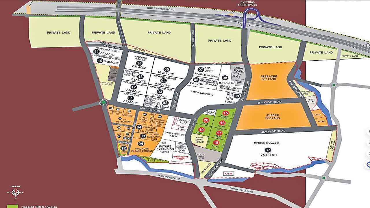 హైదరాబాద్ సిటీబ్యూరో, నవంబర్ 19 (నమస్తే తెలంగాణ): ఖజానా ఖాళీ కావడంతో రాష్ట్ర సర్కారు కాసుల వేటలో పడి ప్రజా ప్రయోజనాలను బలిపీఠమెక్కిస్తున్నది. భవిష్యత్తు అవసరాలపై అవగాహన లేకుండా వ్యవహరిస్తున్నది. బీఆర్ఎస్ ప్రభుత్వం అంతర్జాతీయస్థాయి మౌలిక వసతులతో, భవిష్యత్తు అవసరాలను దృష్టిలో పెట్టుకుని కోకాపేట నియోపొలిస్ ప్రాజెక్టును డెవలప్ చేసింది. ప్లాట్ల విషయంలో అధికారులు రూపొందించిన ప్లాన్లను ఎంతో జాగ్రత్తగా పట్టాలెక్కించింది. వందల ఎకరాల్లో విస్తరించి ఉన్న ఆ ప్రాంతాన్ని మల్టీపుల్ జోన్గా గుర్తించి ప్రజా అవసరాలకు వినియోగించే భవనాలకు అనువుగా భూమిని కేటాయించింది. రూ.5 వేల కోట్ల ఆదాయ అంచనాలతో వేలానికి సిద్ధం చేసిన 41 ఎకరాల భూములను కానీ కాంగ్రెస్ ప్రభుత్వం అమ్మకానికి పెట్టేందుకు సిద్ధమవుతున్నది. ఈ మేరకు అధికారులు లేఅవుట్లలో మార్పులు చేస్తున్నారు.