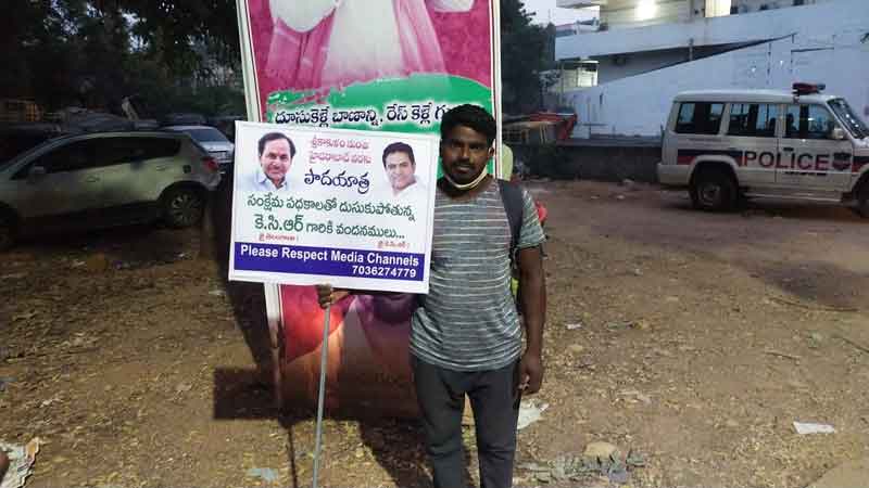 కోదాడ టౌన్, డిసెంబర్ 14 : తన అభిమాన మంత్రి కేటీఆర్ను కలవాలని ఆంధ్రా కు చెందిన ఓ యువకుడు పెద్ద సాహసమే చేశాడు. శ్రీకాకుళం నుంచి హైదరాబాద్కు కాలినడకన వెళ్లి కలవాలని నిర్ణయించుకొని నడక ప్రారంభించాడు. ఏపీలోని శ్రీకాకుళం జిల్లా రాజాం మండలం సారథి గ్రామానికి చెందిన వండాన శేఖర్కు మంత్రి కేటీఆర్ అంటే వీరాభిమానం. ‘అభివృద్ధి, సంక్షేమ పథకాలతో దూసుకెళ్తున్న సీఎం కేసీఆర్కు వందనాలు’ అనే ఫ్లెక్సీతో నవంబర్ 30న తన గ్రామం నుంచి కాలినడకన బయల్దేరాడు. మంగళవారం సూర్యాపేట జిల్లా కోదాడకు చేరుకున్నాడు.