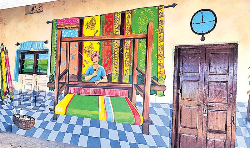 గంభీరావుపేట, జూన్ 10:రాజన్న సిరిసిల్ల జిల్లాలో గ్రామీణ ప్రాంత పిల్లలను బడికి రప్పించడమే కాదు, చేనేత పరిశ్రమపై అవగాహన కల్పించే లక్ష్యంతో సర్కారు బడులు సరికొత్తగా రూపుదిద్దుకుంటున్నాయి. ఐటీ శాఖ మంత్రి కేటీఆర్ చొరవతో గంభీరావుపేట మండలం దమ్మన్నపేట మండల పరిషత్ ప్రాథమిక పాఠశాలపై చేనేత చిత్రాలు ప్రాణం పోసుకుంటున్నాయి. గివ్ తెలంగాణ, అరబిందో ఫార్మా ఫౌండేషన్ ఆధ్వర్యంలో తరగతి గది గోడలపై వేసిన కళాత్మక చిత్రాలు ప్రతి ఒక్కరికి కట్టిపడేస్తున్నాయి. –