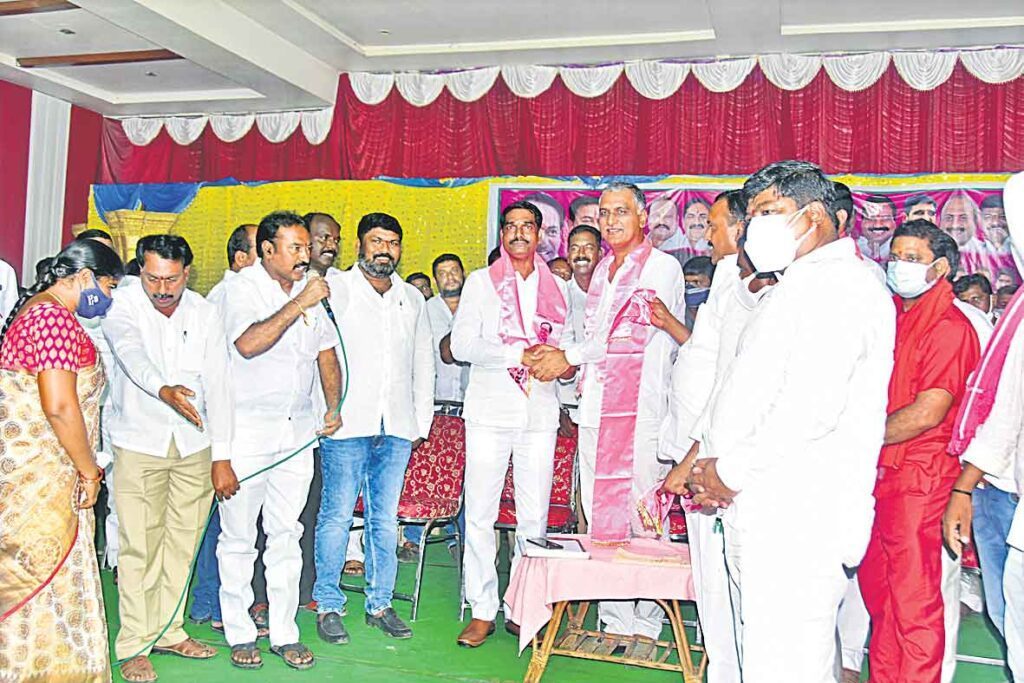 జమ్మికుంటలో జరిగిన కార్యక్రమంలో డీసీసీబీ వైస్ చైర్మన్ పింగిళి రమేశ్, మాజీ ఎంపీపీ గంగారపు లత, మాజీ వైస్ ఎంపీపీ చుక్కా రంజిత్, నాయకులు శ్యాం, సురేందర్, చందు, రమేశ్తోపాటు వెయ్యి మంది మంత్రి హరీశ్రావు సమక్షంలో టీఆర్ఎస్లో చేరారు. ఎమ్మెల్యేలు అరూరి రమేశ్, కోరుకంటి చందర్, నన్నపునేని నరేందర్, టీఆర్ఎస్ రాష్ట్ర నాయకుడు పాడి కౌశిక్ రెడ్డి, శ్రీధర్రెడ్డి, జమ్మికుంట మున్సిపల్ చైర్మన్ తక్కెళ్లపల్లి రాజేశ్వర్రావు పాల్గొన్నారు.