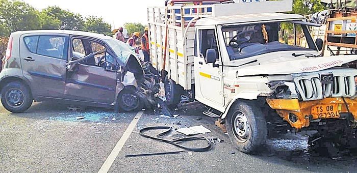 ఎర్రవల్లి చౌరస్తా, ఏప్రిల్ 11: లారీని ఓవర్టేక్ చేసే క్రమంలో అదుపుతప్పిన కారు డివైడర్ను దాటి ఎదురుగా వస్తున్న బొలెరోను ఢీకొట్టింది. ఈ ప్రమాదంలో కూతురు సహా తల్లిదండ్రులు దుర్మరణం చెందగా, కొడుకు తీవ్రంగా గాయపడ్డాడు. బొలెరోలో ప్రయాణిస్తున్న ముగ్గురు కూడా గాయపడ్డారు. ఈ ఘటన జోగుళాంబ గద్వాల జిల్లా ఇటిక్యాల మండలంలోని ధర్మవరం వద్ద ఆదివారం చోటుచేసుకున్నది. ఏపీలోని కడప జిల్లా ఎర్రిపల్లికి చెందిన మోహన్రెడ్డి హైదరాబాలో ప్రింటింగ్ మిషన్ సామాన్ల దుకాణం నివసిస్తున్నారు. ఆదివారం కుటుంబ సభ్యులతో కలిసి కారులో స్వగ్రామం ఎర్రిపల్లికి బయలుదేరారు. ధర్మవరం స్టేజీ వద్ద జాతీయ రహదారిపై లారీని ఓవర్టేక్ చేయబోయి అదుపుతప్పి డివైడర్ను దాటి ఎదురుగా వస్తున్న వాహనాన్ని ఢీకొట్టారు. ప్రమాదంలో మోహన్రెడ్డి(45) ఘటనా స్థలంలోనే మృతి చెందారు. కర్నూల్ దవాఖానకు తరలించగా చికిత్సపొందుతూ మోహన్రెడ్డి భార్య సజాత (40), కూతురు స్నేహ(13) చనిపోయారు. కుమారుడు సాయి చికిత్స పొందుతున్నాడు. బొలెరో ప్రయాణిస్తున్న ముగ్గురికి వ్యక్తులకు గాయాలయ్యాయి.