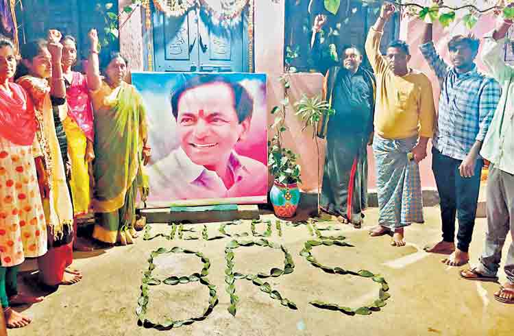 టీఆర్ఎస్ బీఆర్ఎస్గా రూపాంతరం చెంది అధికారికంగా గుర్తింపు దక్కడంతో ఆదిలాబాద్ జిల్లా ఇచ్చోడ మండలం ముక్రా(కే)లో గురువారం టీఆర్ఎస్ నాయకులు సంబురాలు జరుపుకొన్నారు. సీఎం కేసీఆర్ చిత్రపటం వద్ద ఆకులతో ఆంగ్ల అక్షర ఆకృతిలో ‘వెల్కమ్ బీఆర్ఎస్’ అని రాసి.. ‘జై కేసీఆర్.. దేశ్కీ నేత కేసీఆర్’ అంటూ నినదించారు. ఎంపీటీసీ గాడ్గె సుభాష్, సర్పంచ్ గాడ్గె మీనాక్షి మాట్లాడుతూ కాబోయే ప్రధాని కేసీఆర్ అని పేర్కొన్నారు. – ఇచ్చోడ