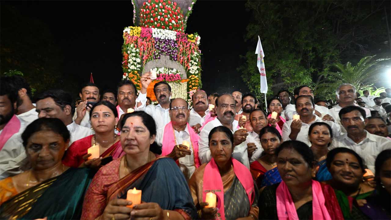 KCR | బీఆర్ఎస్ ఆధ్వర్యంలో తెలంగాణ రాష్ట్ర ఆవిర్భావ దశాబ్ది ఉత్సవాలు ప్రారంభమయ్యాయి. హైదరాబాద్ గన్పార్క్ వద్దకు చేరుకున్న బీఆర్ఎస్ అధినేత కేసీఆర్ క్యాండిల్ ర్యాలీని ప్రారంభించారు. గన్పార్క్లోని తెలంగాణ అమరవీరుల స్థూపం నుంచి డాక్టర్ బీఆర్ అంబేద్కర్ తెలంగాణ సచివాలయం ఎదురుగా ఉన్న అమరజ్యోతి వరకు క్యాండిల్ ర్యాలీ కొనసాగింది.