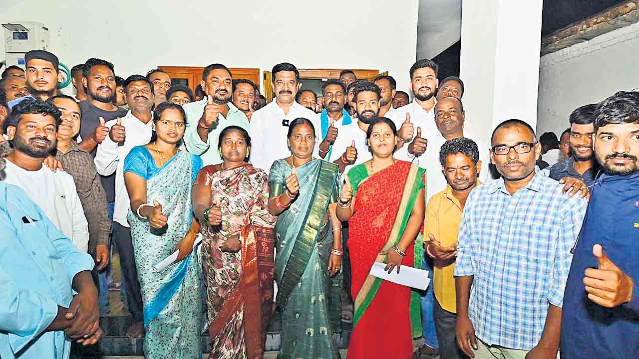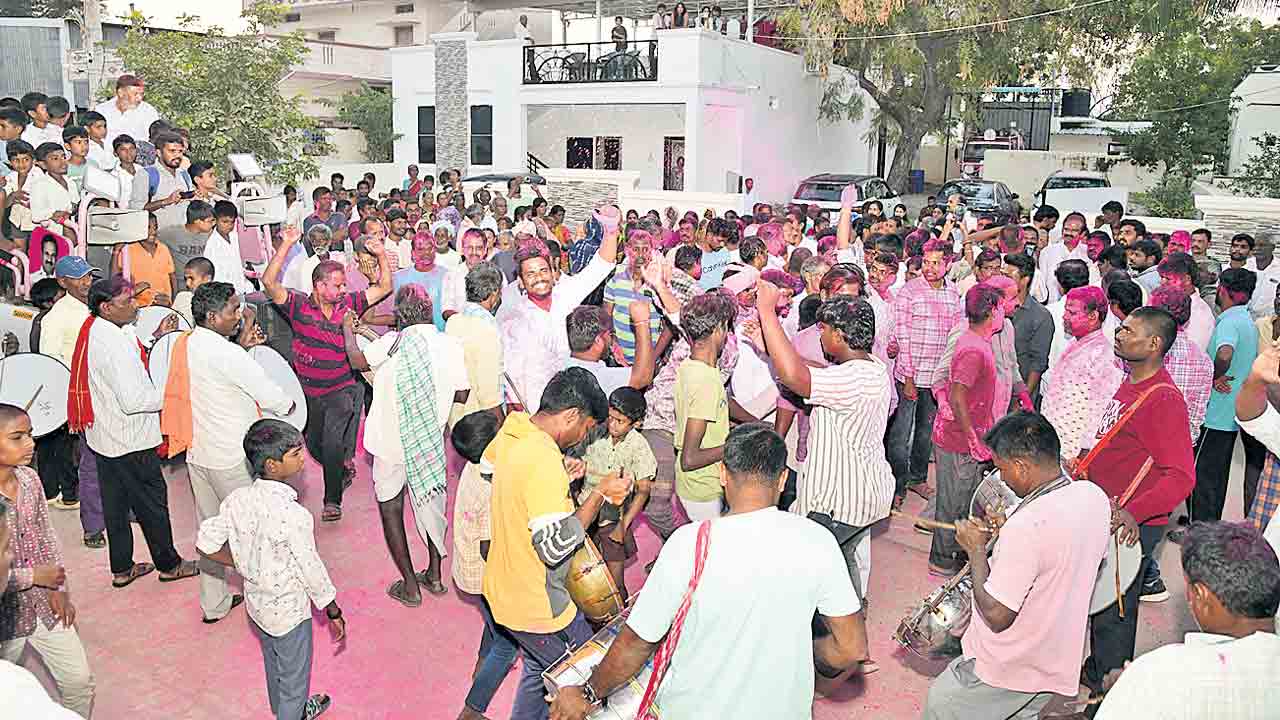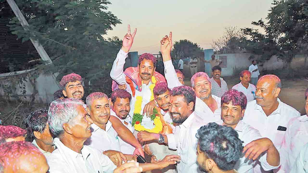 నల్లగొండ జిల్లా చింతపల్లి మండలం దేన్యతండాలో బీఆర్ఎస్ బలపర్చిన అభ్యర్థి కొండల్ నాయక్ గెలుపుతో స్థానికుల సంబురాలు