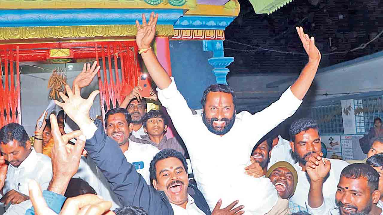 వికారాబాద్ జిల్లా పూడూరు మండలంలోని ఎంకేపల్లి గ్రామంలో బీఆర్ఎస్ బలపర్చిన సర్పంచ్ అభ్యర్థి దయాకర్ గెలుపుతో సంబురాల్లో పార్టీ నాయకులు, స్థానిక ప్రజలు