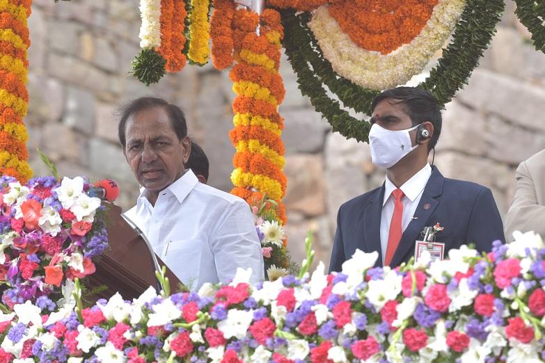 హైదరాబాద్ : తెలంగాణ రాష్ట్రంలో దళిత బంధు పథకాన్ని ఉద్యమంగా మారుస్తూ.. నవశకానికి నాంది పలుకుతాం. దేశంలో సరికొత్త చరిత్రను సృష్టించి.. దళితుల జీవితాల్లో నూతన క్రాంతిని పరిఢవిల్లేలా చేస్తామని సీఎం కేసీఆర్ అన్నారు. దళితజాతి సమగ్ర వికాసం కోసం ఇప్పటివరకూ జరిగింది ఒక ఎత్తు అయితే, ఇప్పుడు జరగబోయేది ఇంకో ఎత్తు అనే విధంగా తెలంగాణా ప్రభుత్వం దళితబంధు ఉద్యమానికి నాంది పలుకుతున్నది అని సీఎం కేసీఆర్ తెలిపారు. 75వ స్వాతంత్ర్య దినోత్సవ వేడుకల సందర్భంగా గోల్కొండ కోటపై జాతీయ జెండా ఎగురవేసిన అనంతరం కేసీఆర్ ప్రసంగించారు.