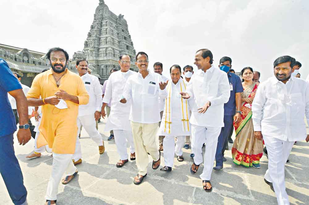 యాదాద్రి ఆలయాన్ని వైభవోపేతంగా తీర్చిదిద్దాలనే సంకల్పంతో పునర్నిర్మాణ బాధ్యతలు రిటైర్డ్ ఐఏఎస్ ఆఫీసర్, తెలంగాణ బిడ్డ, కళాతపస్వి కిషన్రావుకు అప్పగించాం. హైదరాబాద్లోని శిల్పారామం సృష్టికర్త కూడా కిషన్రావే. నగరంలో అదొక ల్యాండ్ మార్క్గా ఉన్నది. ఇటీవల మూసీ ఒడ్డున కూడా శిల్పారామం ఏర్పాటుచేశారు. ఇది ఎక్కడ పెట్టినా పది-పది వేలమంది సందర్శిస్తున్నారు. అందరూ మా జిల్లాలో పెట్టండి అని అడుగుతున్నారు. కిషన్రావు ఆధ్వర్యంలో మొత్తం యాదాద్రి నిర్మాణం జరిగింది. నల్లగొండ జిల్లావాసి కావడం వారి జిల్లావారికి గర్వకారణం. ఆయన చాలా చక్కగా బాధ్యతను నిర్వర్తించారు. గొప్పగా పుణ్యక్షేత్రం ఆవిష్కృతమైంది.