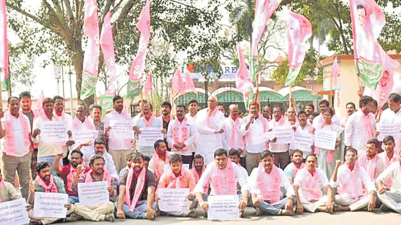 సింగరేణి ఆర్జీ-2 పరిధిలోని వకీల్పల్లి గని, జీఎం కార్యాలయం ఎదుట టీబీజీకేఎస్ అధ్యక్షుడు మిర్యాల రాజిరెడ్డి, నా యకులు, ఆర్జీ-3 జీఎం కార్యాలయం ఎదుట టీబీజీకేఎస్ అధ్యక్షుడు మిర్యాల రాజిరెడ్డి, మాజీ ఎమ్మెల్యే పుట్ట మధూకర్, టీబీజీకేఎస్ ఉపాధ్యక్షుడు నాగెల్లి సాం బయ్య వేర్వేరుగా ధర్నాలు చేశారు. కొత్తగూడెంలోని సింగరేణి ప్రధాన కార్యాలయం, సత్తుపల్లి, ఇల్లెందు ఏరియాల్లోని జీఎం కార్యాలయాలను బీఆర్ఎస్, టీబీజీకేఎస్ నాయకులు ముట్టడించారు. హెడ్డాఫీస్ ఎదుట ఉన్న సింగరేణి తల్లికి టీబీజీకేఎస్ చీఫ్ జనరల్ సెక్రటరీ కాపు కృష్ణ వినతిపత్రం సమర్పించి ‘సింగరేణిని నీవే కాపాడుకోవాలి తల్లీ..’ అంటూ ప్రాధేయపడ్డారు. బీఆర్ఎస్ భద్రాద్రి జిల్లా అధ్యక్షుడు రేగా కాంతారావు, మాజీ మంత్రి వనమా వెంకటేశ్వరరావు తదితరులు పాల్గొన్నారు.