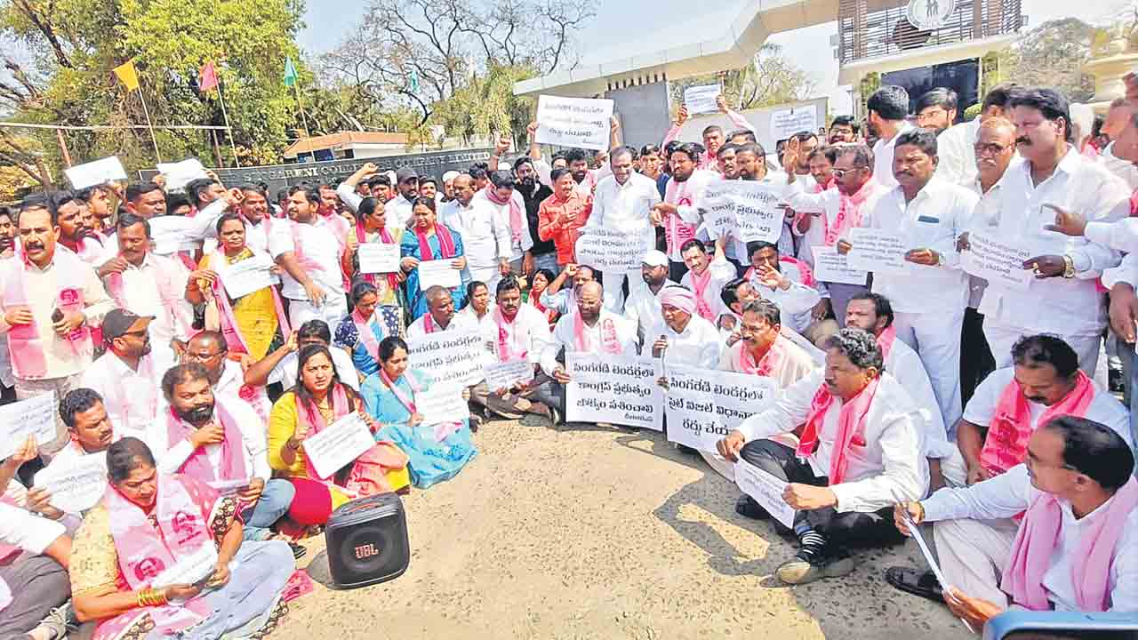 సింగరేణిలో సైట్ విజిట్ దందాపై సిట్టింగ్ జడ్జితో న్యాయ విచారణ జరి పించాలని భూపాలపల్లి మాజీ ఎమ్మెల్యే గండ్ర వెంకటరమణారెడ్డి డిమాండ్ చేశారు. జయశంకర్ భూపాలపల్లి జిల్లా కేంద్రంలోని అంబేదర్ సెంటర్లో బీఆర్ఎస్ నాయకులు పెద్ద ఎత్తున ధర్నా నిర్వహించారు. ఈ సందర్భంగా మాట్లాడుతూ.. పరిపాలన చేతగాని కాంగ్రెస్ ప్రభుత్వం సింగరేణిని పూ ర్తిగా ఆర్థిక సంక్షోభంలోకి తీసుకువెళ్లిందని విమర్శించారు. ఎవడబ్బ సొమ్మని సీఎం రేవంత్ ఫుట్బాల్ ఆటకు సింగరేణి నిధులు రూ.10 కోట్లు ఖర్చు చేశారని ప్రశ్నించారు.