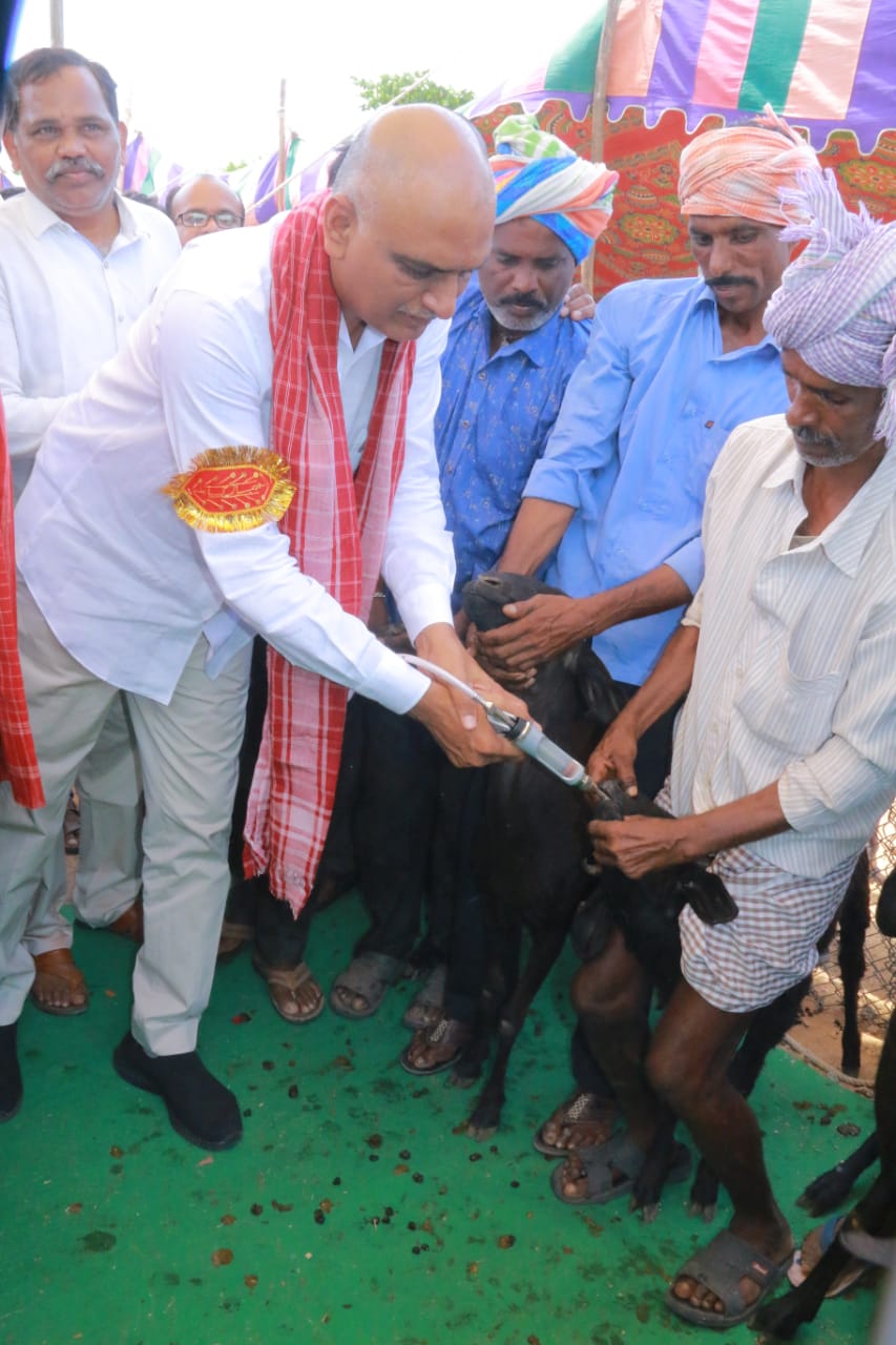 సిద్దిపేట : ఎక్కువ రోగనిరోధక శక్తి కలిగి ఉండి, రుచికరమైన, అత్యధిక న్యూట్రిషన్ కలిగి ఉన్న దక్కనీ గొర్రెలను అధిక సంఖ్యలో పెంచి భవిష్యత్ తరాలకు అందించాలని వైద్య, ఆరోగ్య శాఖ మంత్రి హరీశ్ రావు అన్నారు. సిద్దిపేట అర్బన్ మండలం మిట్టపల్లి క్లస్టర్ రైతు వేదికలో గొర్రెలకు నట్టల నివారణ మాత్రలు వేసి.. దక్కని జాతి గొర్రెల అభివృద్ధి పథకం లబ్ధిదారులు, క్షేత్ర సహాయకుల శిక్షణ కార్యక్రమాన్ని ప్రారంభించారు.