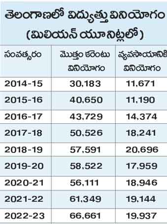 తెలంగాణలో ఎక్కువగా ఉన్నవి చిన్న కమతాలే. వ్యవసాయానికి ఒక గంటసేపు కరెంటు ఇస్తే ఒక ఎకరం పొలం తడుస్తది. కాబట్టి రాష్ట్రంలోని రైతులకు మూడునాలుగు గంటల కరెంటు సరిపోతుంది. కేసీఆర్ ప్రభుత్వం ఇస్తున్నట్టు 24 గంటల కరెంటు రైతులకు అవసరం లేదు. 3 గంటలు చాలు. పొలం పారేందుకు రైతులు 10 హెచ్పీ మోటర్లు బిగించుకోవాలి.