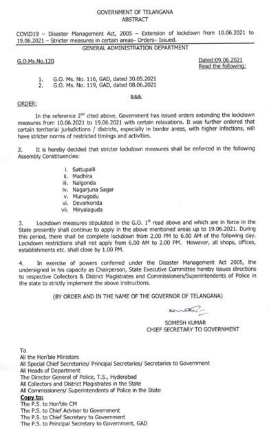 నల్లగొండ జిల్లాలోని నకిరేకల్ మినహా నల్లగొండ, దేవరకొండ, మిర్యాలగూడ, నాగార్జునసాగర్, మునుగోడు నియోజకవర్గాల్లో యధావిధిగా లాక్డౌన్ కొనసాగుతుంది. ఉదయం 6 గంటల నుంచి మధ్యాహ్నం 2 గంటల వరకే లాక్డౌన్ మినహాయింపు ఉంది. కరోనా తీవ్రత ఎక్కువగా ఉన్న నేపథ్యంలో ఆయా ప్రాంతాల్లో గతంలో మాదిరిగానే లాక్డౌన్ కొనసాగుతుందని ప్రభుత్వం ప్రకటించింది. వీటితోపాటు ఖమ్మం జిల్లాలోని సత్తుపల్లి, మధిర నియోజకవర్గాల్లో కూడా లాక్డౌన్ యధావిధిగా కొనసాగనుంది.