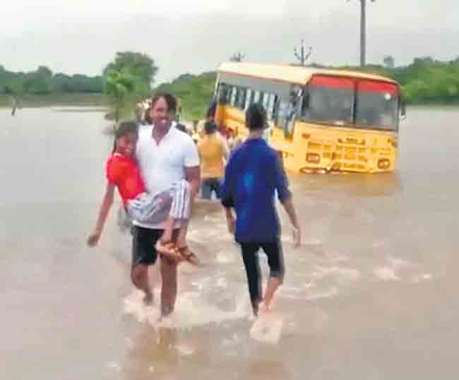 మహబూబాబాద్ జిల్లా తొర్రూరు పట్టణానికి చెందిన ఓ ప్రైవేట్ స్కూల్ బస్ కొమ్ములవంచ మీదుగా నర్సింహులపేటకు వెళ్తున్న క్రమంలో కొమ్ములవంచ కొత్త చెరువు మత్తడిలో చిక్కుకున్నది. అప్రమత్తమైన స్థానికులు బస్సులో ఉన్న 20 మంది పిల్లలను సురక్షితంగా బయటకు తీసుకొచ్చారు. దంతాలపల్లి మండలంలోని పెద్దముప్పారం శివారు పాలేరు వాగులో తొర్రూరుకే చెందిన మరో ప్రైవేట్ పాఠశాలకు చెందిన బస్సు చిక్కుకుంది. గ్రామస్థులు వాగు నుంచి బస్సును వెనుకకు తోసి విద్యార్థులను కాపాడారు.