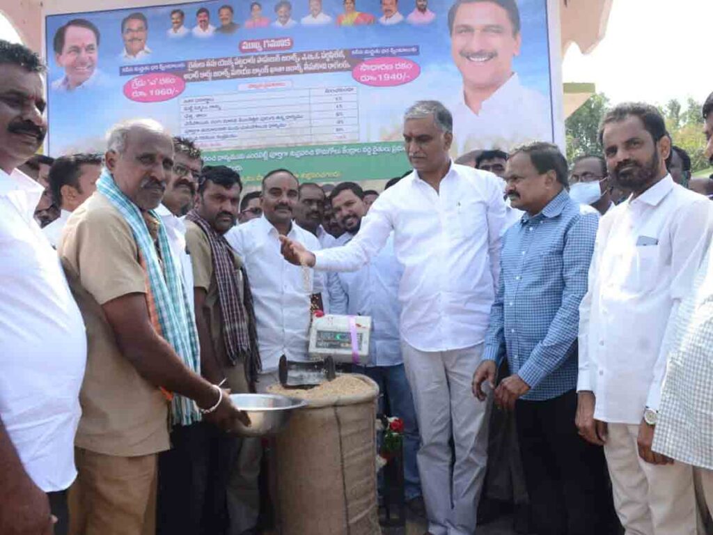 ఈ సందర్భంగా మంత్రి మాట్లాడుతూ..జిల్లాలో వానాకాలం ధాన్యం పంట కొనుగోలుకు 396 ధాన్యం కొనుగోలు కేంద్రాలు ఏర్పాటు చేశామని మంత్రి హరీశ్ తెలిపారు. అన్ని గ్రామాల్లో రైతులకు ఇబ్బంది కలగకుండా ధాన్యం కొనుగోలు కేంద్రాల ఏర్పాటు చేశామన్నారు. వానాకాలంలో రికార్డ్ స్థాయిలో 3 లక్షల 3 వేల ఎకరాలలో వరి సాగు 7 లక్షల 50 వేల మెట్రిక్ టన్నుల ధాన్యం దిగుబడి వచ్చిందని పేర్కొన్నారు.
