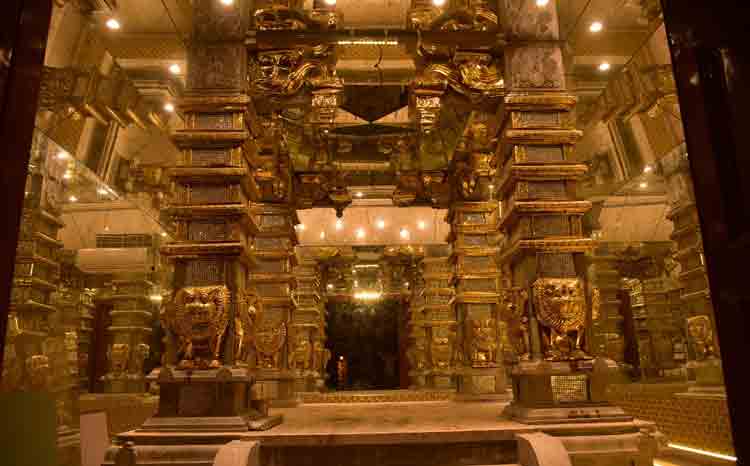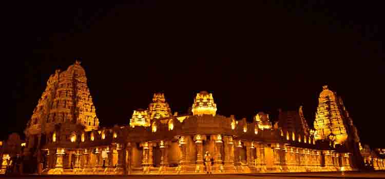 ఆర్నమెంటల్ లుక్ ఉండాలంటూ సూచనలు చేశారు. దేవాలయం చుట్టూ 360 డిగ్రీలు ఎటుతిరిగినా చుట్టూరా దృశ్యం సుందరంగా, ఐకానిక్ ఎలిమెంట్లా ఉండాలన్నారు. విష్ణు పుష్కరిణి చుట్టూ ప్రహరిపై లైట్లు, మైదానం మధ్యలో ఎనభై అడుగుల ఎత్తు దీపస్తంభం, రహదారులపై విద్యుత్తు కాంతులు ఏర్పాటు చేయాలని సూచించారు. ఆలయమే కాదు, ఆలయ నగరి అంతా రాత్రివేళ లైటింగ్ ఏర్పాట్లతో జిగేల్ మంటుంది. అద్దాల మండపమైతే భక్తులను అబ్బుర పరుస్తుంది. ప్రధానాలయంలోని ద్వితీయ ప్రాకారంలో వాయువ్య దిశలో స్వామివారి అద్దాల మండపం ఉన్నది. మండపంలోని స్తంభాలన్నింటికీ ఇత్తడి రేకులతో బంగారంలా మెరిసే విధంగా గ్లాస్ పాలిషింగ్ చేశారు. ఇందులో విద్యుద్దీపాలను వెలిగించడంతో మండపం స్వర్ణమయంగా కనిపిస్తున్నది. ఇక్కడ ఊయలలో నరసింహస్వామి, లక్ష్మీ అమ్మవారిని ఉంచి శయనోత్సవం నిర్వహిస్తారు. స్వామివారి రూపాలు అన్ని వైపులా కనిపించే విధంగా అద్దాల మండపం ఏర్పాటు చేశారు.