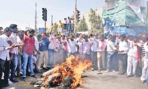 హైదరాబాద్, మార్చి 3 (నమస్తే తెలంగాణ): ఎక్సైజ్శాఖ మంత్రి వీ శ్రీనివాస్గౌడ్ హత్యకు కుట్ర పన్నడం పట్ల ఉద్యోగసంఘాలు భగ్గుమన్నాయి. టీఎన్జీవో, టీజీవో, పీఆర్టీయూటీఎస్, ట్రెసా తదితర సంఘాల నేతలు గురువారం నల్లబ్యాడ్జీలు ధరించి నిరసన తెలిపారు. నాంపల్లిలోని టీజీవో కార్యాలయం వద్ద కుట్రదారుల దిష్టిబొమ్మను దహనం చేశారు. కుట్రదారులను గుర్తించి, కఠినంగా శిక్షించాలని డిమాండ్ చేశారు. తెలంగాణ ద్రోహుల్లారా ఖబడ్దార్ అంటూ నినాదాలు చేశారు. అనంతరం ఇంచార్జి డీజీపీ అంజనీకుమార్ను కలిసి వినతిపపత్రం సమర్పించారు. మూడ్రోజులపాటు నల్లబ్యాడ్జీలు ధరించి నిరసనలు తెలపాలని ఉద్యోగులకు పిలుపునిచ్చారు. కార్యక్రమంలో టీఎన్జీవో కేంద్రం సంఘం అధ్యక్ష, ప్రధాన కార్యదర్శులు మామిళ్ల రాజేందర్, రాయికంటి ప్రతాప్, టీజీవో అధ్యక్ష, ప్రధాన కార్యదర్శులు వీ మమత, సత్యనారాయణ, ట్రెసా అధ్యక్ష, ప్రధాన కార్యదర్శులు రవీందర్రెడ్డి, గౌతంకుమార్, పీఆర్టీయూ ప్రధాన కార్యదర్శి బీరెల్లి కమలాకర్రావు, పలు సంఘాల నేతలు పీ రవీందర్కుమార్, రామినేని శ్రీనివాస్రావు, ఎంబీ కృష్ణాయాదవ్, ముజీబ్ హుస్సేని, జీ వెంకటేశ్వర్లు, సహదేవ్, నోరి శ్రీనేశ్కుమార్ గోపి, శిరీష, స్వరూప తదితరులు పాల్గొన్నారు. తెలంగాణ ఎక్సైజ్ అధికారుల సంఘం ఆధ్వర్యంలో నిర్వహించిన నిరసన ప్రదర్శనలో ఆబారీ సంఘ రాష్ట్ర అధ్యక్షుడు టీ రవీందర్రావు, ప్రధాన కార్యదర్శి డీ అరుణ్కుమార్, కోశాధికారి టీ లక్ష్మణ్గౌడ్, ప్రవీణ్కుమార్, కే శ్రీనివాస్, రాజిరెడ్డి, ఆనంద్రావు పాల్గొన్నారు. శ్రీనివాస్గౌడ్ హత్యకు కుట్రను నిరసిస్తూ గురువారం మహబూబ్నగర్ జిల్లా కేంద్రంతోపాటు మండల కేంద్రాల్లో టీఆర్ఎస్ కార్యకర్తలు, ఉద్యోగసంఘాల నాయకులు పెద్ద ఎత్తున నిరసన ర్యాలీలు నిర్వహించారు. బీజేపీ నాయకులు, మాజీ మంత్రి డీకే అరుణ, మాజీ ఎంపీ జితేందర్రెడ్డి దిష్టిబొమ్మలను దహనం చేశారు. కుట్రదారులను వెంటనే శిక్షించాలని డిమాండ్ చేశారు.
