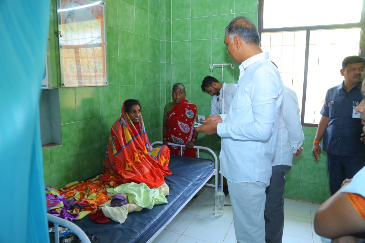 మెదక్ : జిల్లా పర్యటనలో భాగంగా వైద్య, ఆరోగ్య శాఖ మంత్రి హరీశ్ రావు టేక్మాల్ మండల కేంద్రంలోని ప్రాథమిక ఆరోగ్య కేంద్రాన్ని ఆకస్మికంగా తనిఖీ చేశారు. శనివారం రాత్రి ఓ మహిళకు సాధారణ ప్రసవం జరిగిందని స్థానిక నేతల ద్వారా తెలుసుకున్న మంత్రి.. హాస్పిటల్ సిబ్బందికి సమాచారం ఇవ్వకుండా అకస్మాత్తుగా పీహెచ్సీని సందర్శించారు.