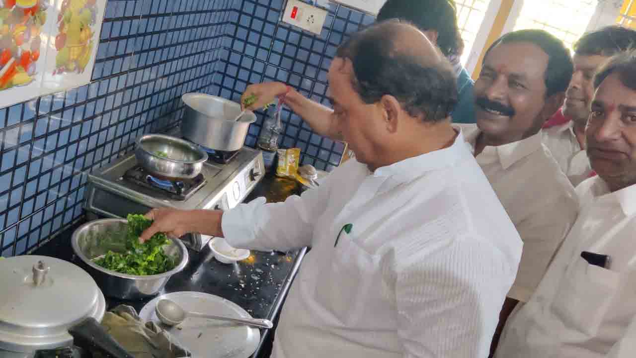 నల్లగొండ : మునుగోడు ఉప ఎన్నికల ప్రచారంలో బీజీబీజీగా ఉన్న మంత్రి ఇంద్రకరణ్ రెడ్డి.. గరిటే తిప్పుతూ గత స్మృతులను నెమరువేసుకున్నారు. మునుగోడు ఉప ఎన్నికల ప్రచారంలో భాగంగా సర్వేల్ గ్రామంలో నిర్మల్ టీఆర్ఎస్ పార్టీ శ్రేణుల విడిది గృహానికి మంత్రి ఇంద్రకరణ్ రెడ్డి వెళ్ళారు.