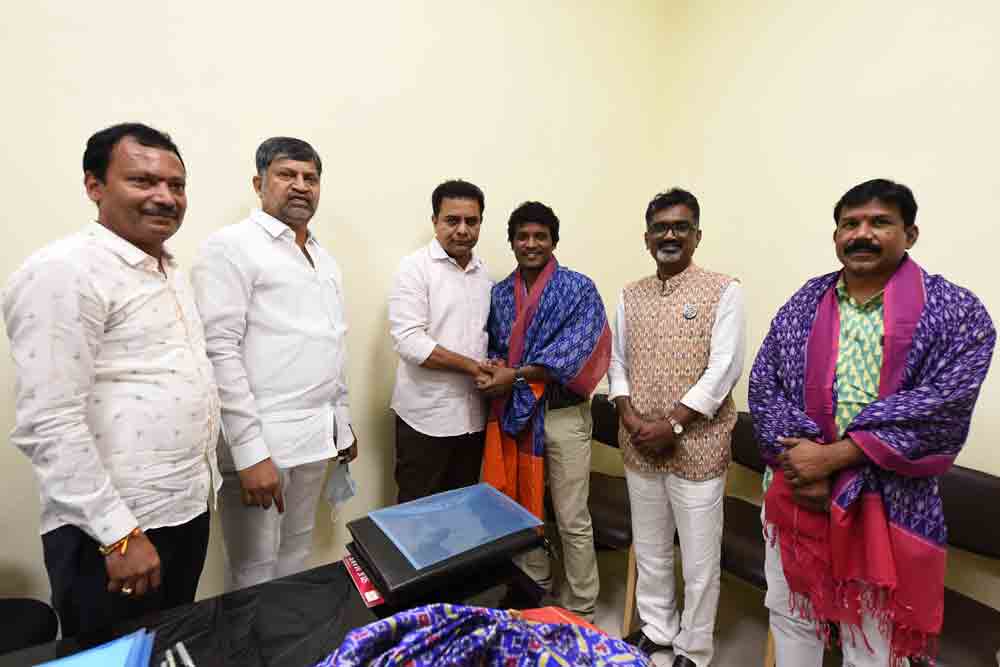 హైదరాబాద్, అక్టోబర్ 4 (నమస్తే తెలంగాణ): దేశం గర్వించదగ్గ చేనేత కళాకారులు తెలంగాణ సొంతమని, వారిని ఎల్లప్పుడూ ప్రభుత్వం ప్రోత్సహిస్తుందని పరిశ్రమలశాఖ మంత్రి కే తారకరామారావు పేర్కొన్నారు. చేనేత రంగంలో విశిష్ట సేవలకు భారత ప్రభుత్వ జాతీయ అవార్డు అందుకొన్న కొలను పెద్ద వెంకయ్య, కొలను రవీందర్, గజం భగవాన్, మెరిట్ సర్టిఫికెట్ల విజేతలు సాయిని భరత్, దుద్యాల శంకర్, తడక రమేశ్ తదితరులు సోమవారం అసెంబ్లీలో మంత్రి కేటీఆర్ను ఆయన చాంబర్లో కలిశారు. ఈ సందర్భంగా మంత్రి వారికి ఘనం గా సత్కరించారు. వృత్తి నైపుణ్యంతో అవార్డులు సాధించి, రాష్ర్టానికి గొప్ప పేరు ప్రఖ్యాతులు తెచ్చారని కొనియాడారు. కార్యక్రమంలో మాజీ మంత్రి ఎల్ రమణ, టీఆర్ఎస్ అధికార ప్రతినిధి కర్నాటి విద్యాసాగర్, జాతీయ చేనేత దినోత్సవ రూపకర్త యర్రమాద వెంకన్న పాల్గొన్నారు.
