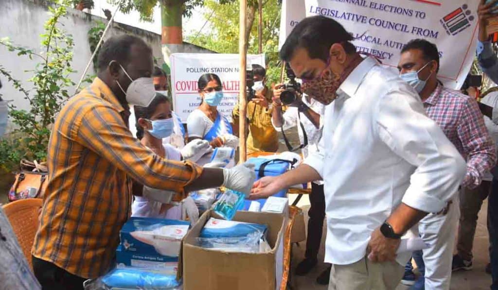 సిరిసిల్ల: స్థానిక సంస్థల కోటా ఎమ్మెల్సీ ఎన్నికల పోలింగ్ కొనసాగుతున్నది. సిరిసిల్లా జిల్లా కేంద్రంలోని జెడ్పీ కార్యాలయంలో ఏర్పాటుచేసిన పోలింగ్ కేంద్రంలో మంత్రి కేటీఆర్ (KTR) తన ఓటు హక్కు వినియోగించుకున్నారు. ఉమ్మడి కరీంనగర్ జిల్లాలో రెండు స్థానాలకు ఎన్నికలు జరుగుతున్నాయి. 10 మంది అభ్యర్థులు పోటీలో ఉన్నారు. మొత్తం 1324 మంది ఓటర్లు ఉన్నారు. సాయంత్రం 4 గంటల వరకు పోలింగ్ జరగనుంది.